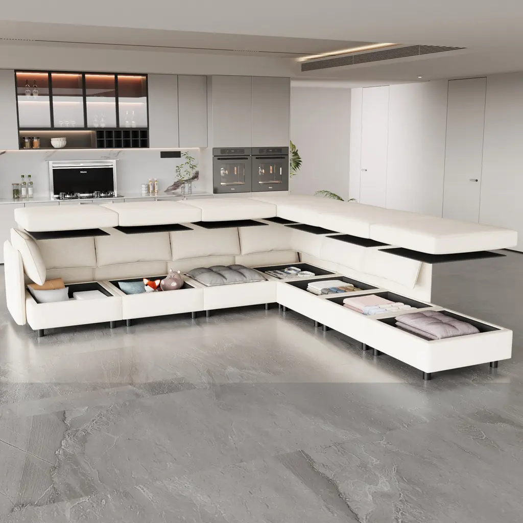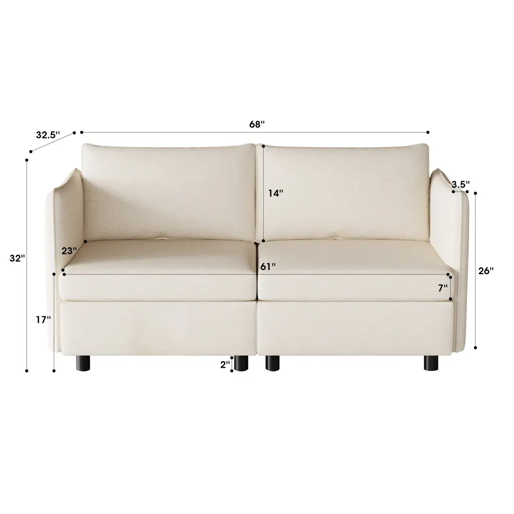 Enhance your living space with this stylish and functional sectional sofa, featuring a sturdy solid wood frame and high-quality sponge-filled cushions for exceptional comfort. The breathable fabric upholstery adds a touch of luxury, making it the perfect centerpiece for any living room, bedroom, or home office. Each seat comes with a convenient storage compartment under the cushion, providing ample space to store books, blankets, and other essentials, ensuring a tidy and organized space.Features:Product Dimensions: