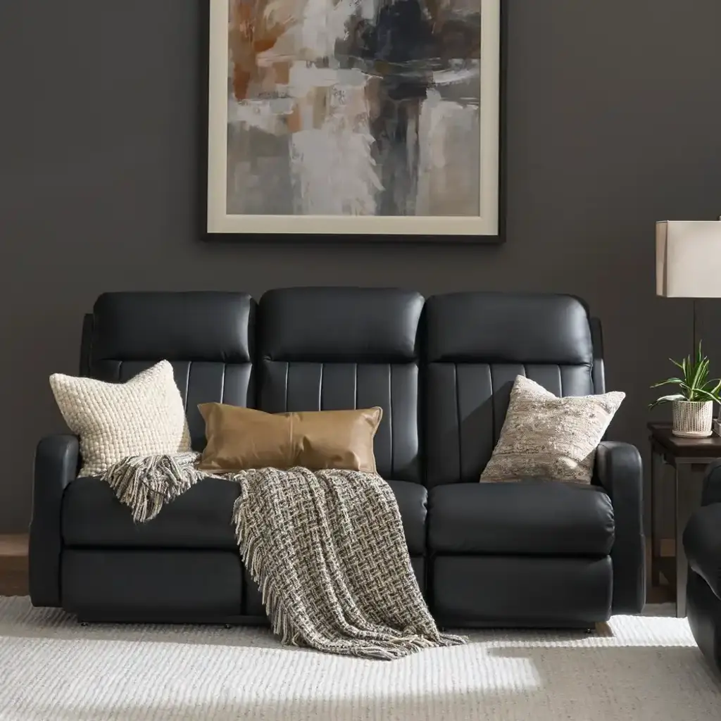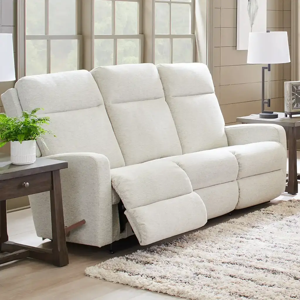 The Finley Wall Reclining Sofa has sleek track arms and a tall foam back that gives it a neat and structured look. The ultra-plush chaise seat and legrest cradle the body in a continuous zone of comfort for reading, relaxing or watching TV.
