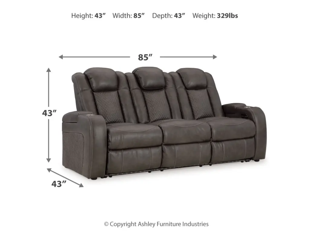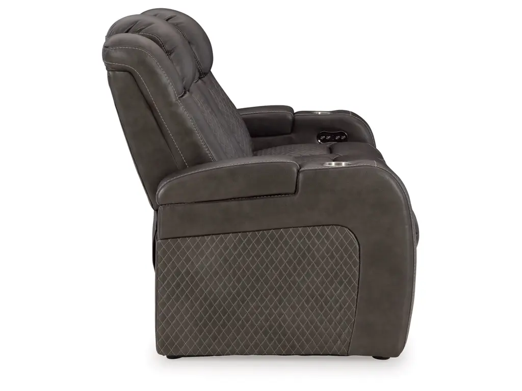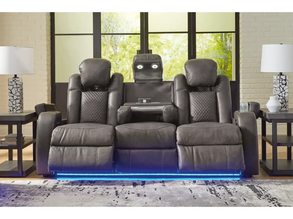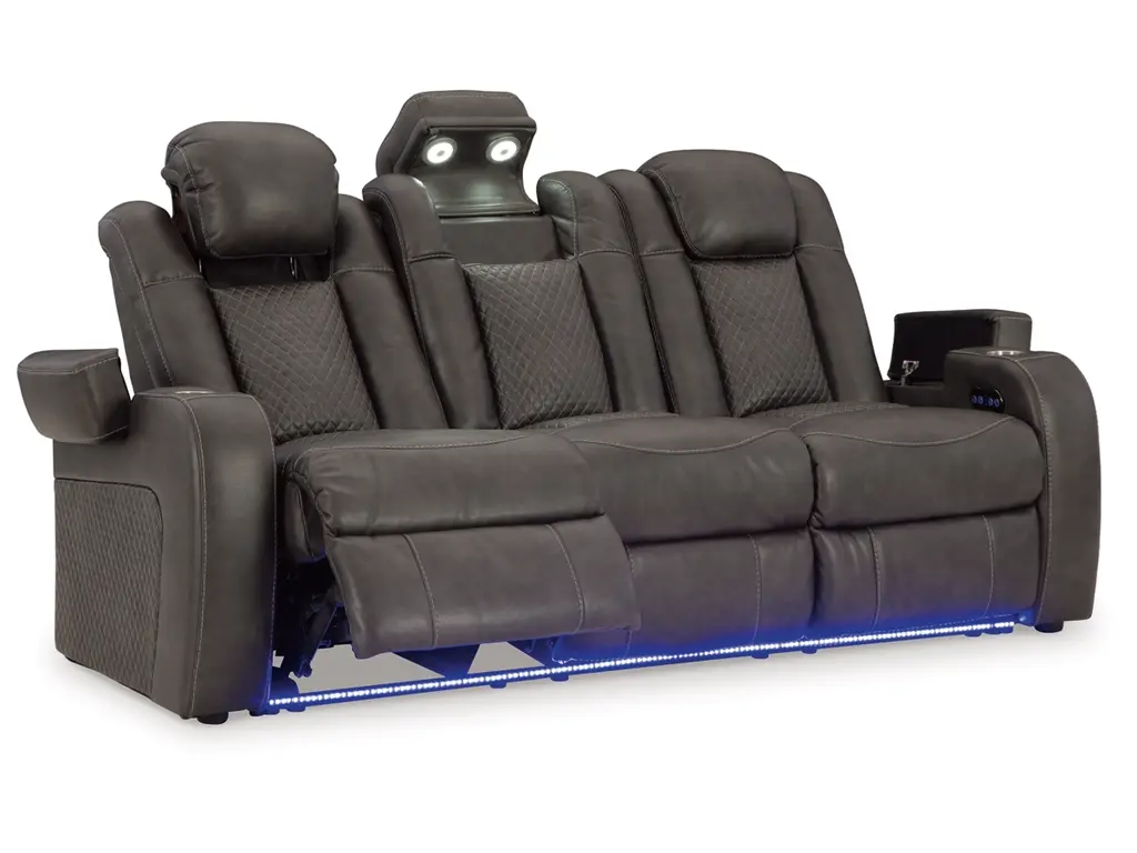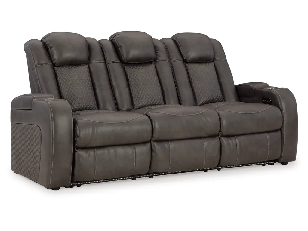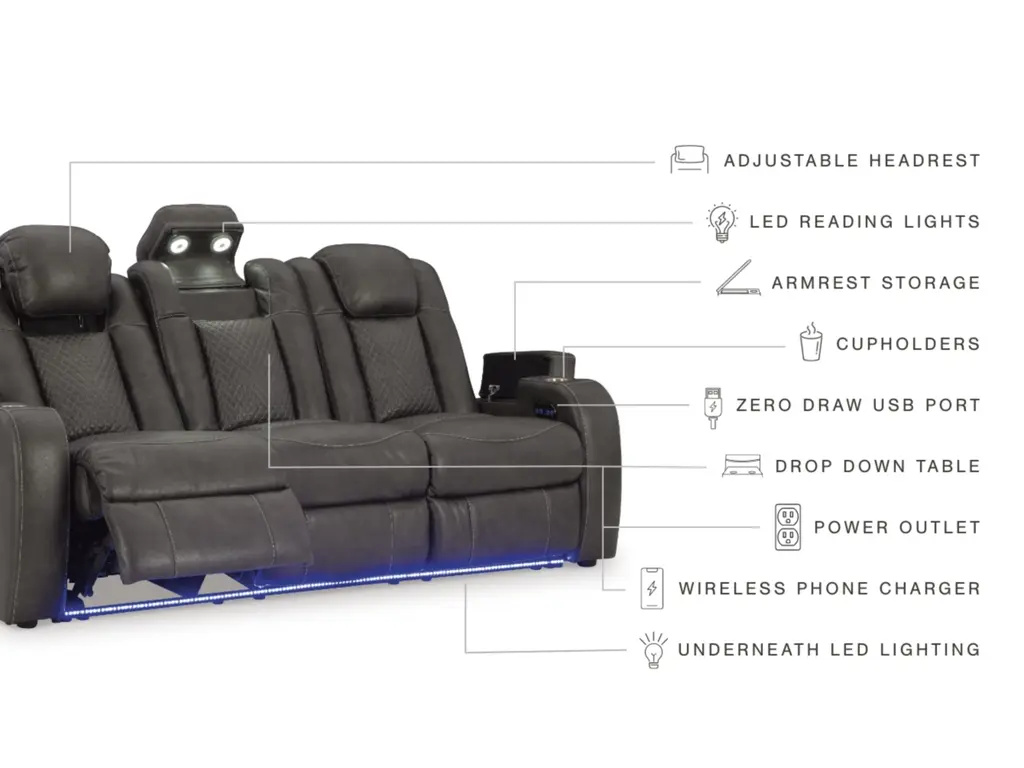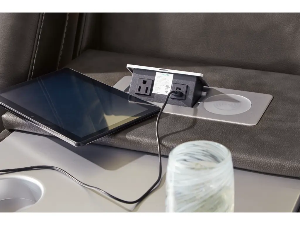 The Fyne-Dyme power reclining sofa goes beyond basic comfort. It upgrades the everyday, turning your living room into an entertainment hub. Don’t want to leave your seat? Keep essentials in reach with assorted charging options, cup holders and storage arms. You can create an even cooler vibe for family movie nights and friendly gaming matches with LED lights. And your sleek style isn’t compromised—its diamond stitching and streamlined arms recall the aesthetics of luxury automobiles.