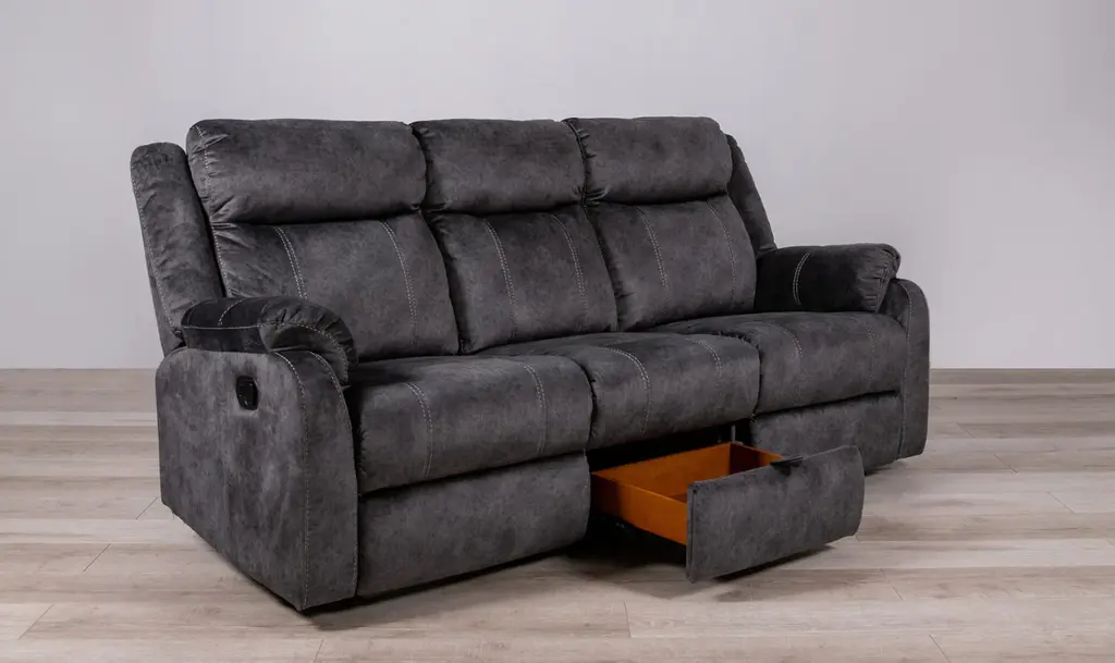 Global Furniture Domino 3-Seater Granite Fabric Recliner Sofa