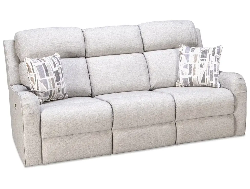 Kick back and relax on the Synergy Granite Power Sofa Recliner with Headrest. It features track arms, pillow top headrests, tufted backs, and chaise footrests. The power buttons let you enjoy all the reclining positions at your fingertips, plus there is a USB charging port. This contemporary-style power sofa recliner also lets you adjust the headrests. Includes two coordinating toss pillows for added comfort and style.