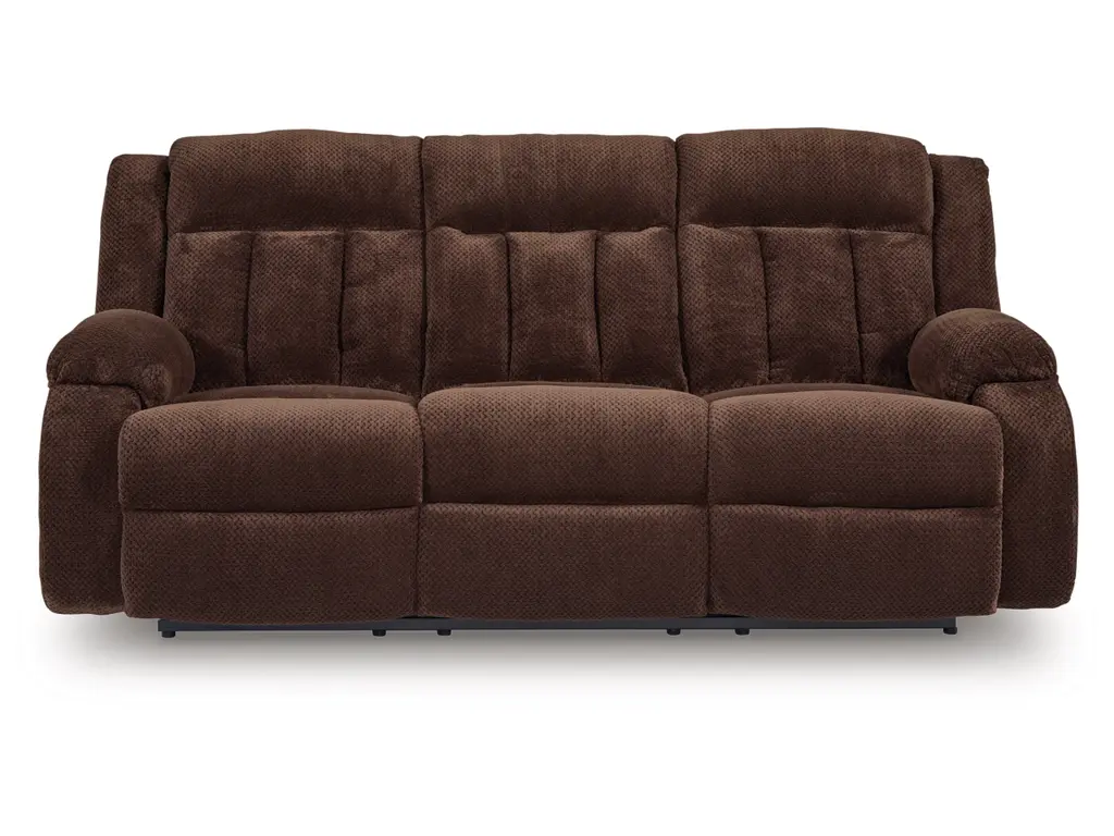 There's no need to sacrifice looks for comfort—the Greely Bend power reclining sofa with drop-down table serves up both, plus a richly relaxed sense of style. Its chocolate-hued velvet upholstery is ultra soft, with a plush waffle weave for an added layer of interest. The overstuffed pillow top armrests are custom made for lazy afternoon catnaps. A one-touch power control takes the pleasure of reclining to a higher level, while cup holders and USB charging help keep essentials close by.