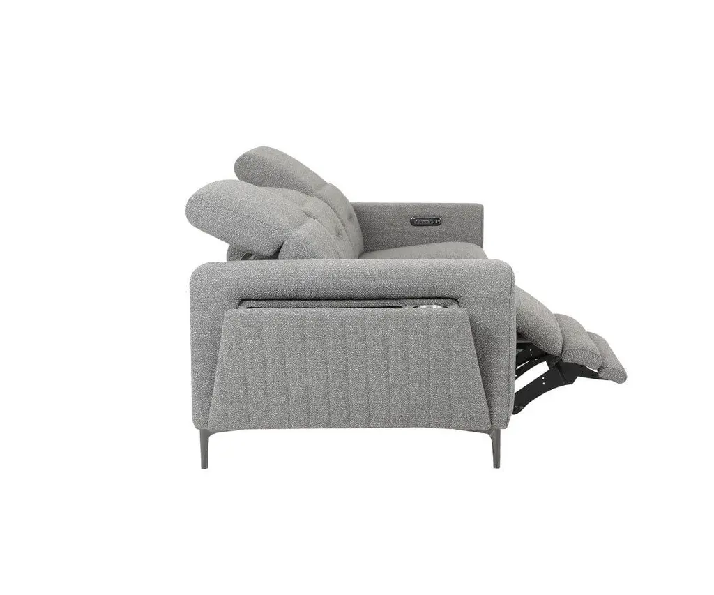 The Harlan Power Sofa brings a blend of comfort and sleek contemporary style to your home. Upholstered in durable fabric crafted from recycled bottles, this eco-friendly piece features pull-out channeled side panels that contain an area to store your reading material of choice. This sofa also comes with a cup holder and a shallow wood-lined drawer under the middle seat, which can be used to keep your living room necessities close at hand. Power reclining makes this sofa the ideal piece of furniture for effortlessly sitting back and unwinding. Add the Harlan Power Sofa to your home and enjoy the power of true relaxation.
