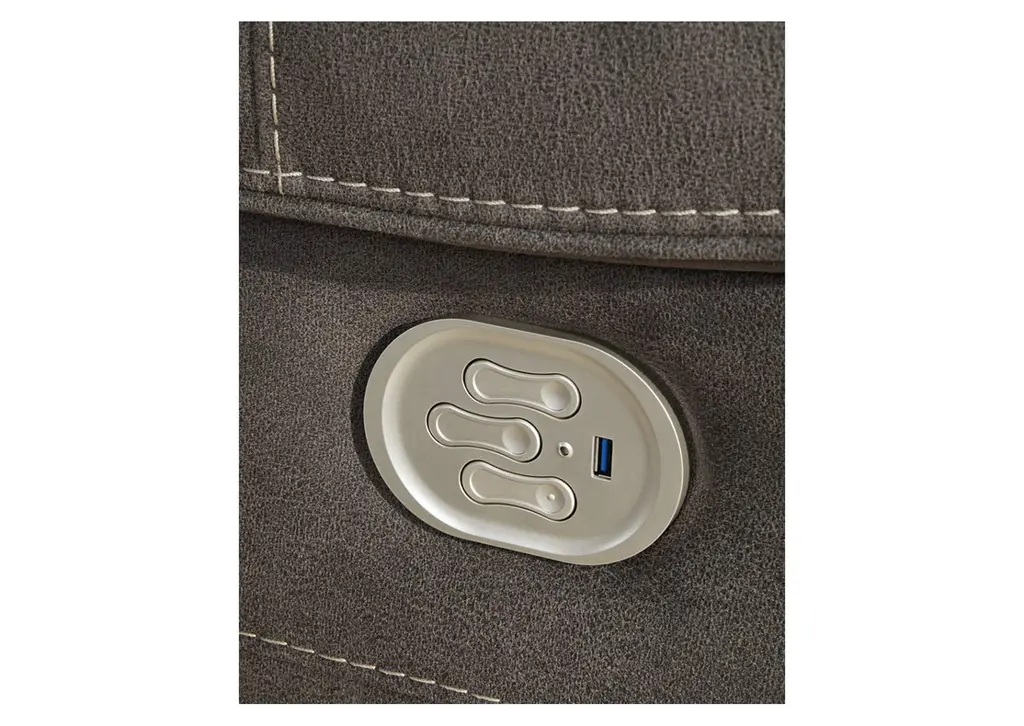 Stylish in design and function, this power reclining sofa creates a comfortable place to gather with family and friends. The sofa, upholstered in heavyweight faux leather with quilting treatment and jumbo stitching, invites you to sink into plush opulence at an affordable price. The zero-wall power reclining mechanism features infinite positions for comfort. Appealing to those with an eye for sumptuous design, this gunmetal gray sofa will always be a win. Weight 305.000 lbs. (137.25kgs.)