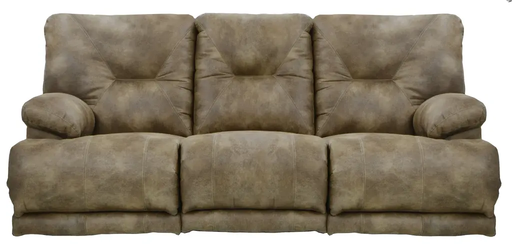 Sometimes, you can have it all, and the James Reclining Sofa is proof. Comfortable, cool and laid back, the James makes relaxing look as great as it feels. With inviting bucket-style seats and chaise leg rests cradle you in cozy support, stitched pillow back styling and pillow top arms pamper you in softness. The recliner is easy to use with a simple latch release system that has you relaxing in no time. High-grade foam cushions maintain comfort and appearance, while double-picked blown fiber fill offers improved cushion loft and shape retention. Decorative wood legs give the recliner an upscale look and feel.