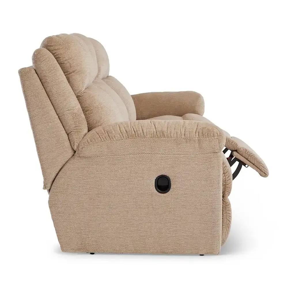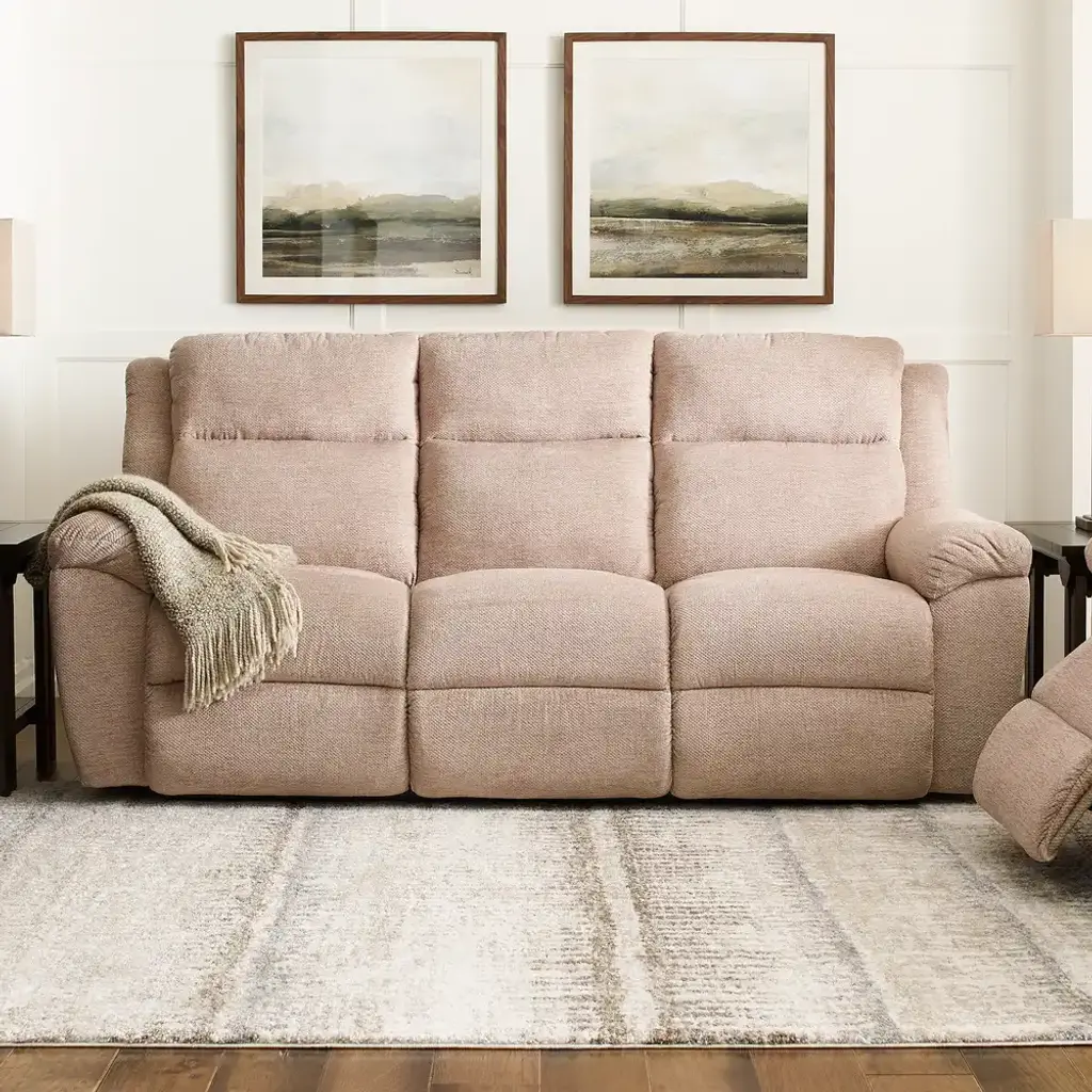 The Joel Reclining Sofa is sure to become a favorite spot! Flared arms topped with generously cushioned arm pads call out for leisurely naps. Kick back the plush reclining chaise seats on either end--reading or watching the game never felt so good!