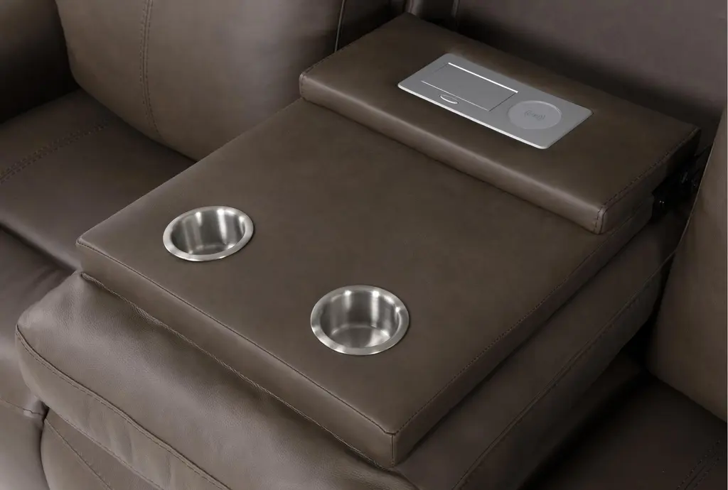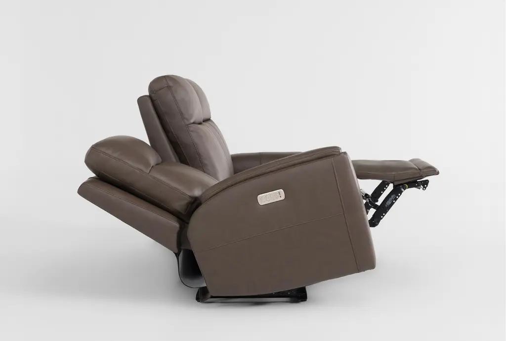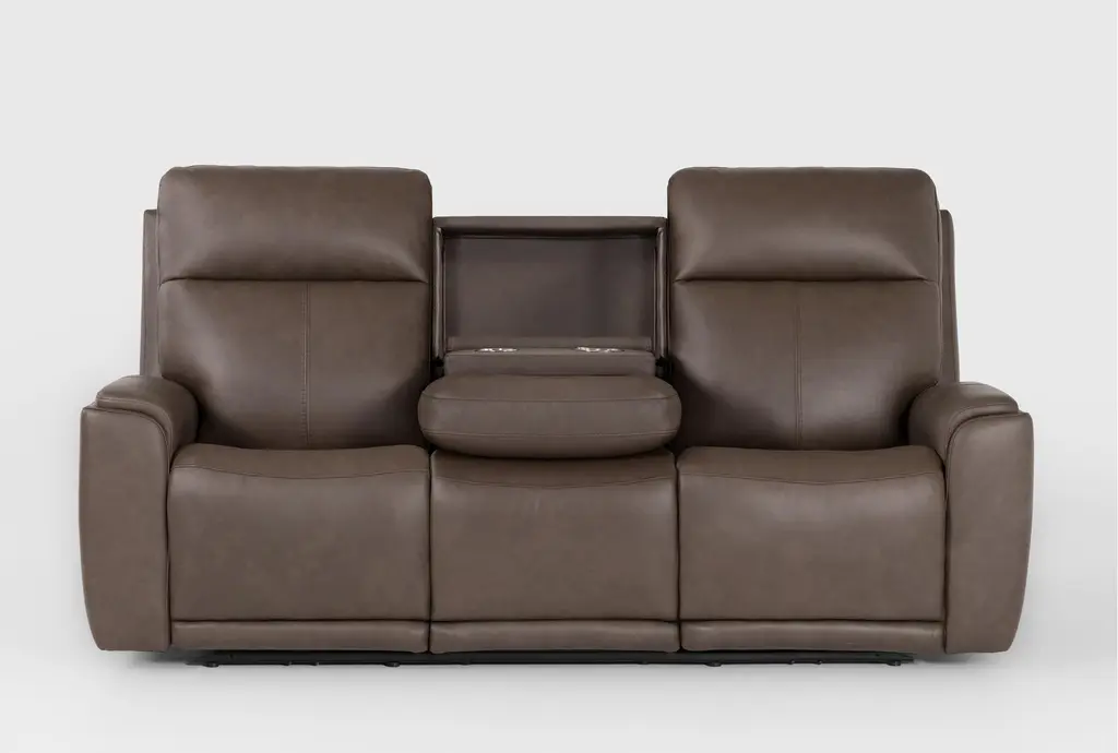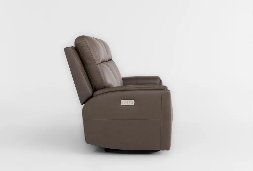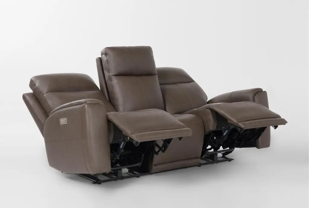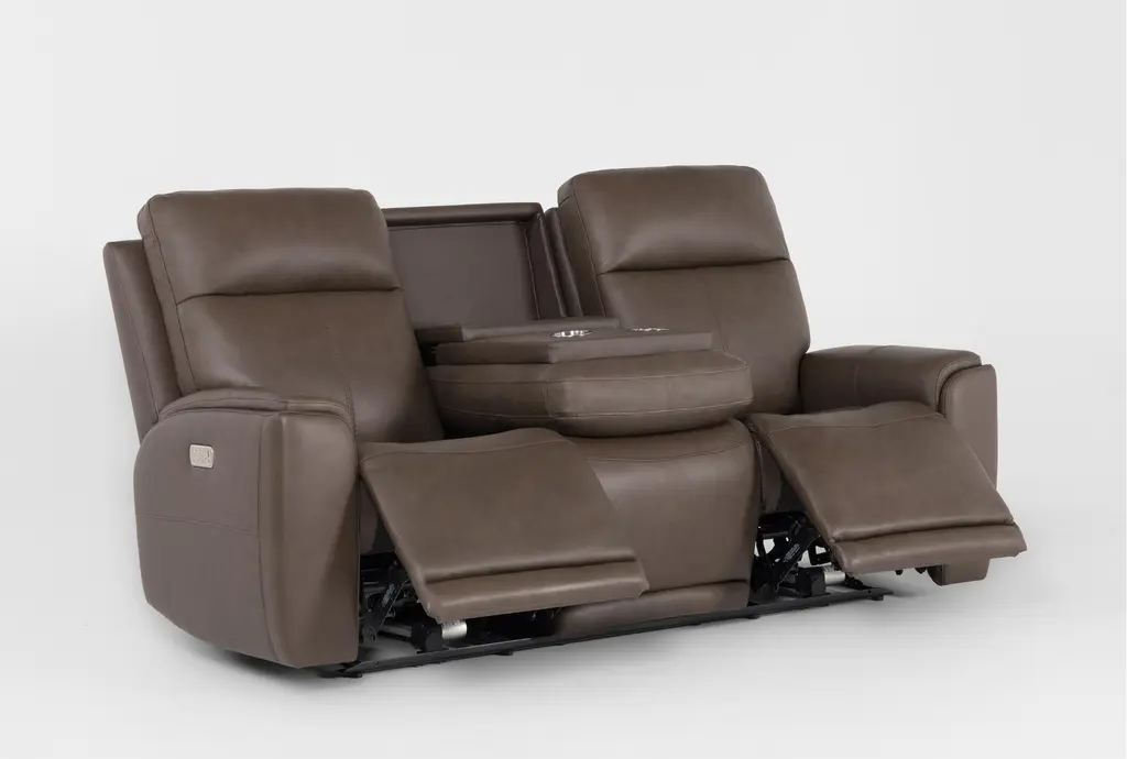 Kinsey Cocoa Leather Flexsteel 85" Power Zero Gravity Reclining Sofa With Power Headrest Power Lumbar Heat Massage & Dropdown Table