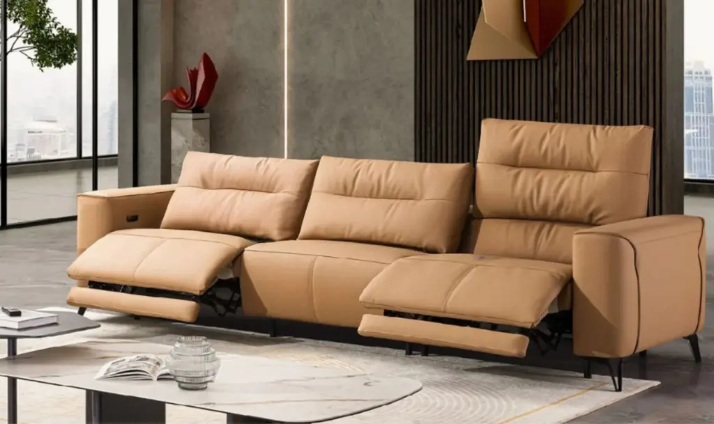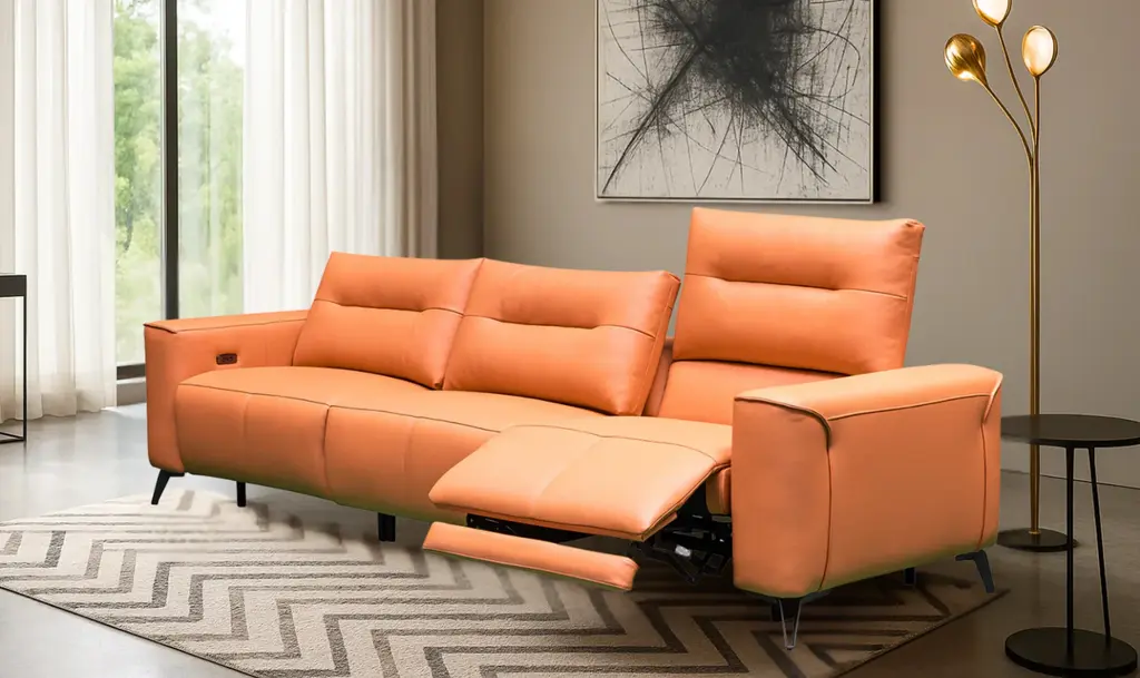 Special Order Available In Different Colors The Alessandro 3-seater power recliner sofa can easily become the ultimate showstopper for your living room or anywhere. Bringing home a piece of Italian luxury that not only looks stunning but is also functional feels like a dream. Crafted in Italian design and upholstered in Italian leather, it screams elegance.You will love sinking into plush comfort with sofa foam padding filled with down cushions and deep stitching. Those armrests are like blooming shells and feel like a piece of art right in your living room. With the power reclining option, you can say goodbye to struggling with manual recliners. Just press a button and lean back. And not to forget the footrest extension, which gives your feet a place to rest instead of hanging in the air.Designed with both aesthetics and functionality in mind, the Alessandro sofa will surprise you for sure with its brown elegance. Seriously, it’s the kind of sofa that will make you forget about all your problems. Note - Does not come with Kidney Pillows
