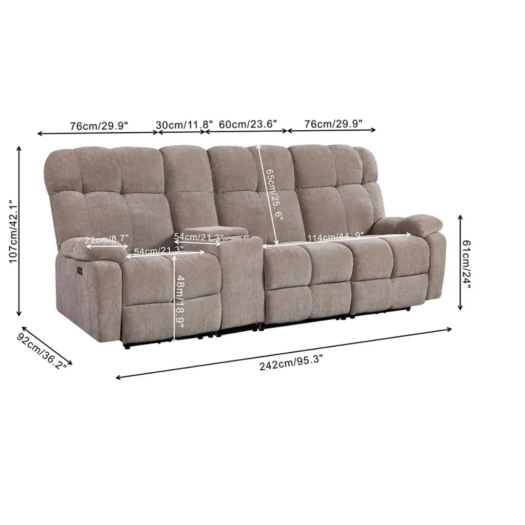 Description With OKIN motor,the backrest and footrest of this power recliner can be adjusted . The position lock is INFINITE,so you can recline to almost any angle within the range (105¡ã - 130¡ã) and stop it at any time. This Sofa are combined with 4 pieces seperately . Combine Each Piece With Connection Buckle. You Can Order Different Combination As you Like. Weight capacity of 300 lbs for each seater .
