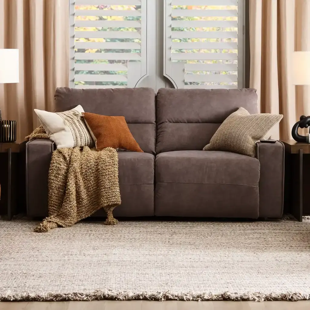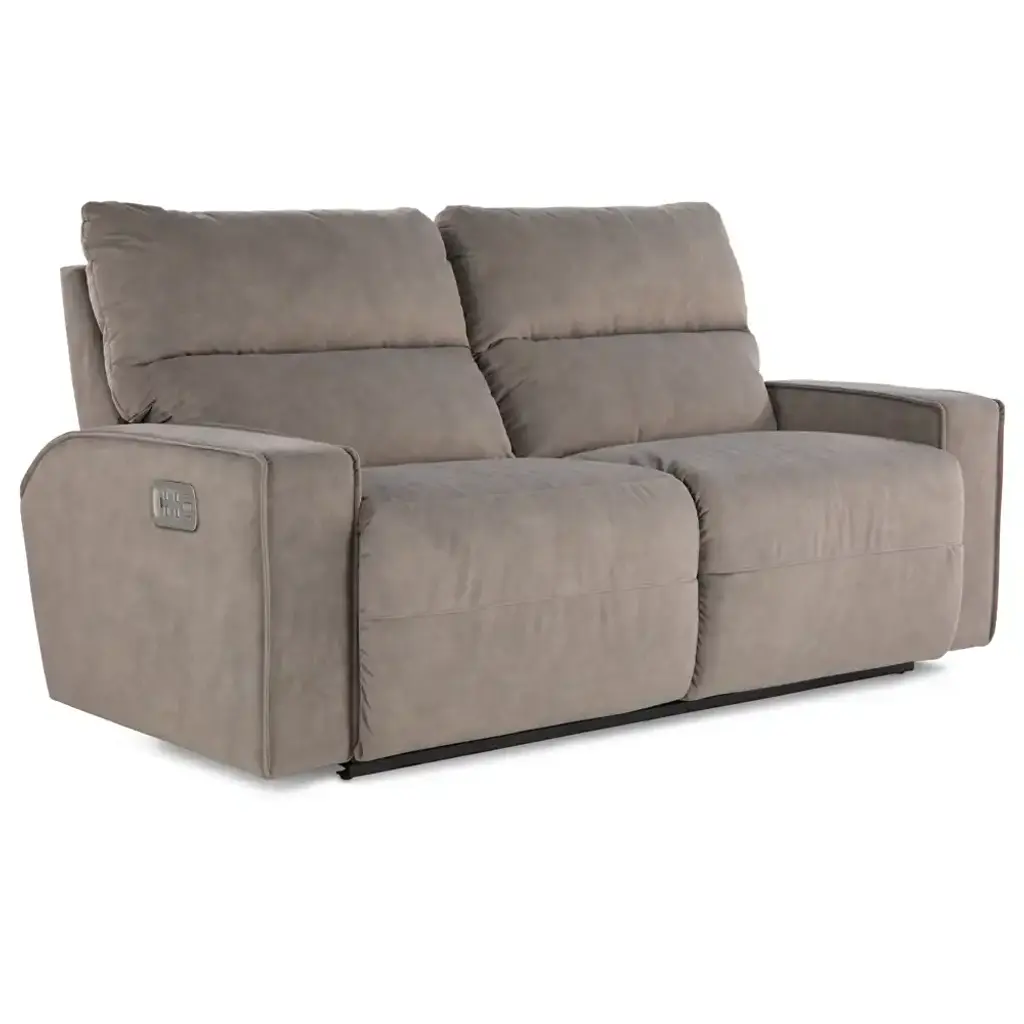 The Maddox Power Reclining 2-Seat Sofa with Headrest and Lumbar is bold and modern with wide waterfall chaise seats and track arms—but cushy backs and a flange trim keep it casual. Adjust extra support for your head and back to bask in roomy luxury!