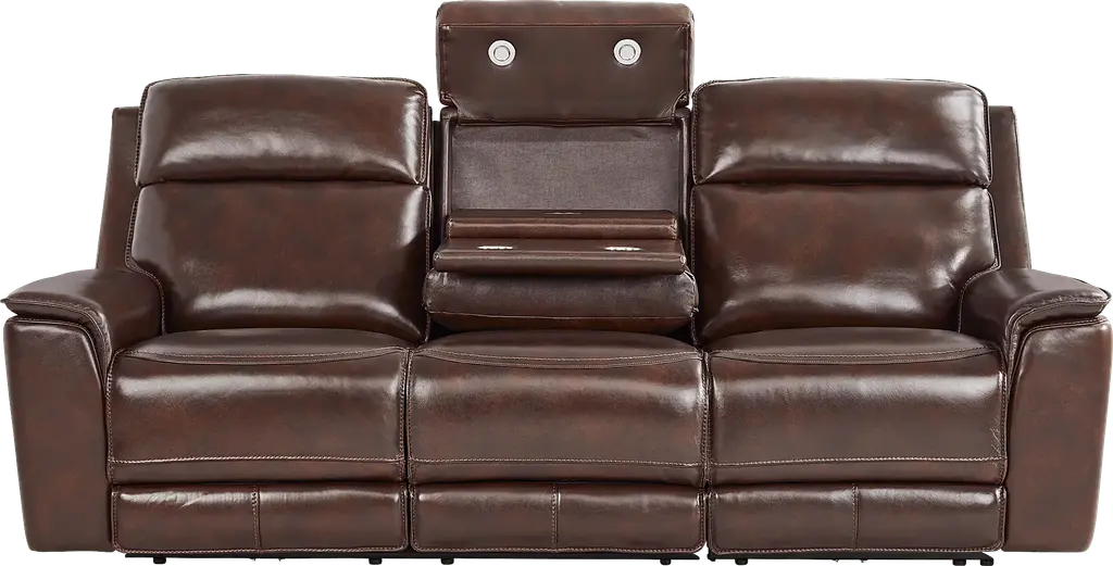 Magellan Chocolate Leather Dual Power Reclining Sofa