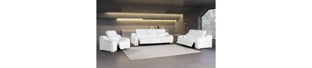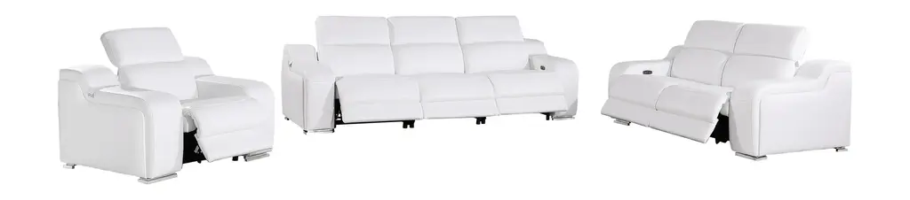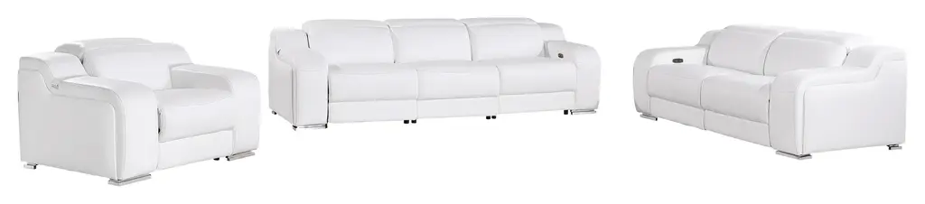 Marco Italian Leather Power Reclining Sofa, Loveseat & Chair Set, White