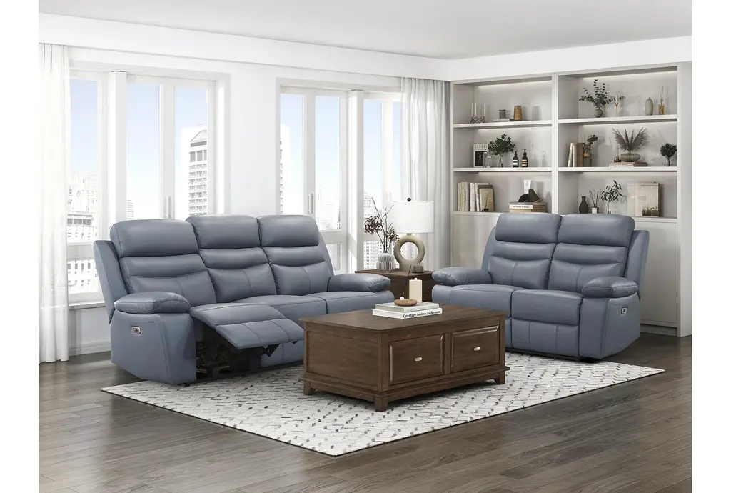 Marigold Blue Leather 86" Power Reclining Sofa With Usb