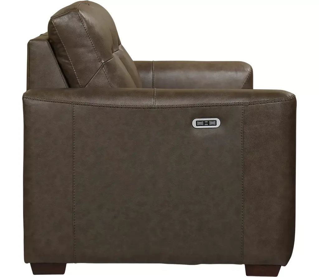 Sit back and relax in our Melbourne sofa. This sleek piece showcases top-grain leather with high-density cushions attached to the back. With power reclining and headrests, you'll find your new favorite spot for relaxation. Professional installation recommended.