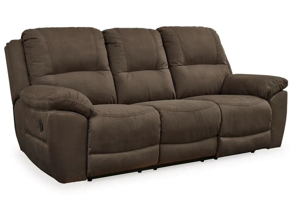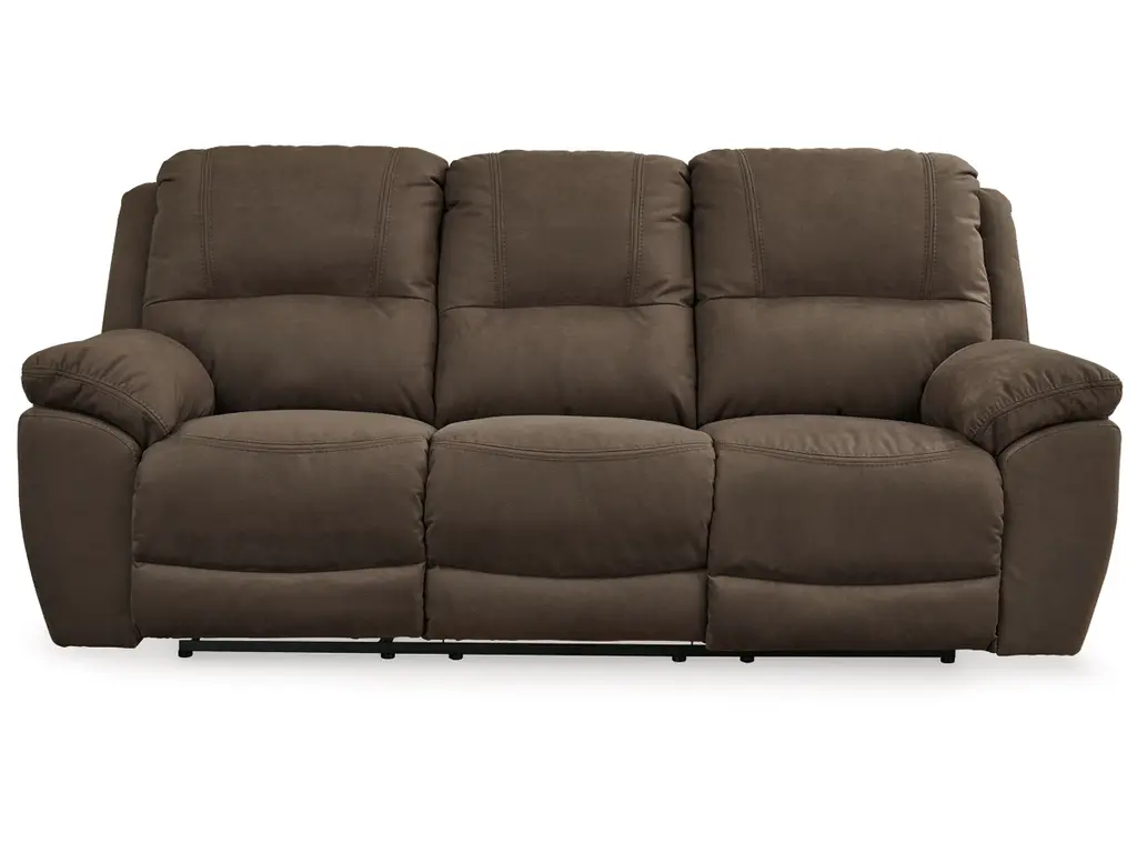 Kick back, relax, and enjoy some sports on TV with the Next-Gen Gaucho reclining sofa. You will love its double stuffed pillow top arms and soft-as-suede faux leather upholstery. The family-friendly espresso color and creative stitching add panache. Recline in comfort even if floor space is limited, thanks to the space-efficient zero wall design. This bustle back sofa will always be a win.