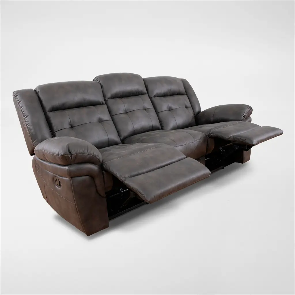 Enjoy all the comfort you can handle with the Parker Manual Reclining Collection. Featuring a two-tone design with contrast stitching, tufted backs, and plenty of padded plush, it'll be your new favorite hangout spot.