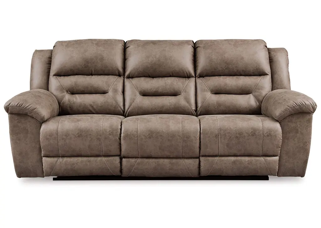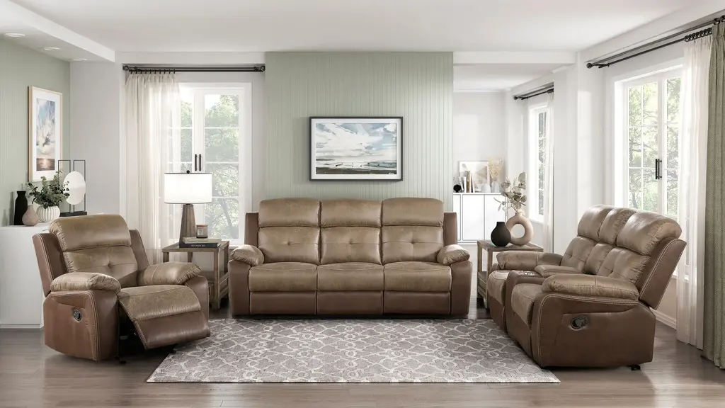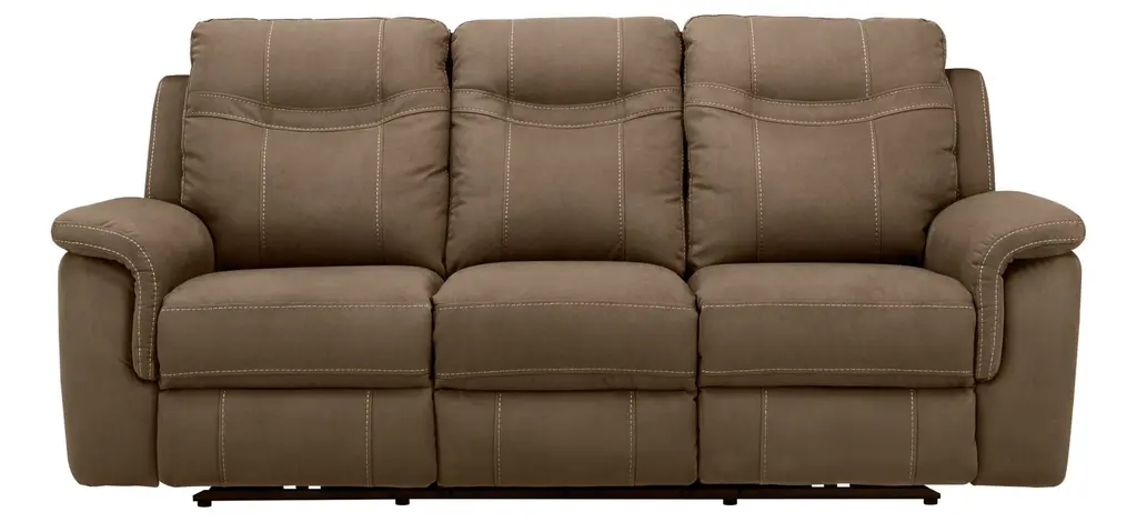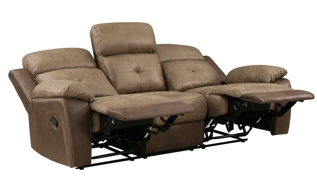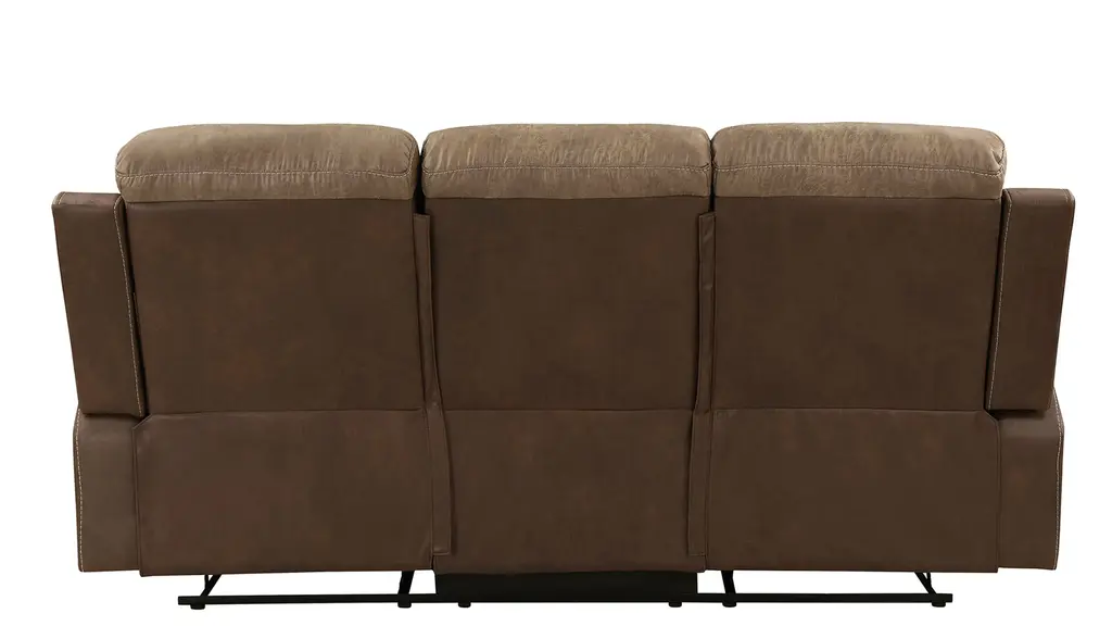 Rest and relaxation are on the list of things to do this weekend and the Pebble Double Reclining Sofa is here to help. Offered in brown polished microfiber, the collection features contoured seating, and plush arms. The sofa has dual reclining ends as well as manual motion mechanisms which operate with the pull of a side-mounted tab, that once engaged, takes you from seated to reclined in an easy motion.