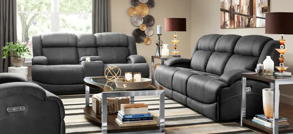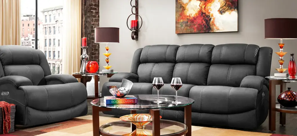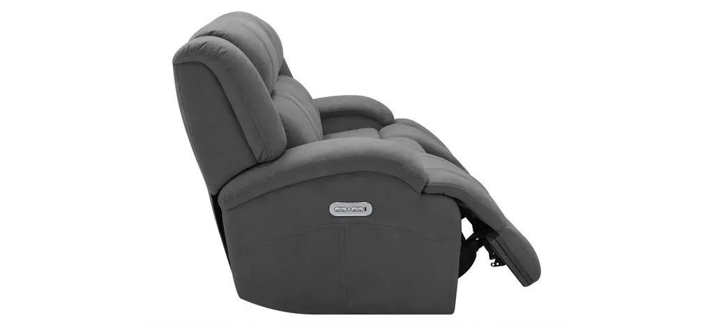 The Quincey power-reclining sofa offers supreme comfort and contemporary styling. Upholstered in 100% family-friendly polyester, this set combines modern style and high tech features into one inviting package.