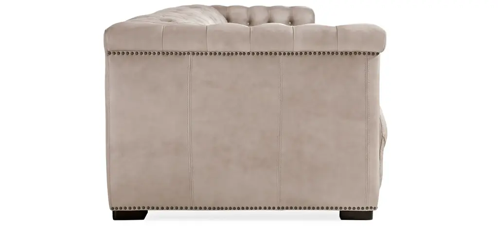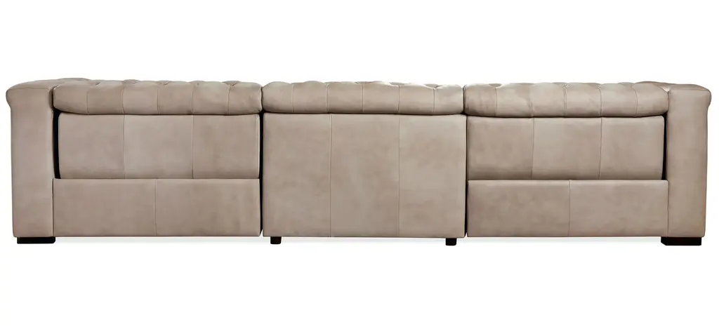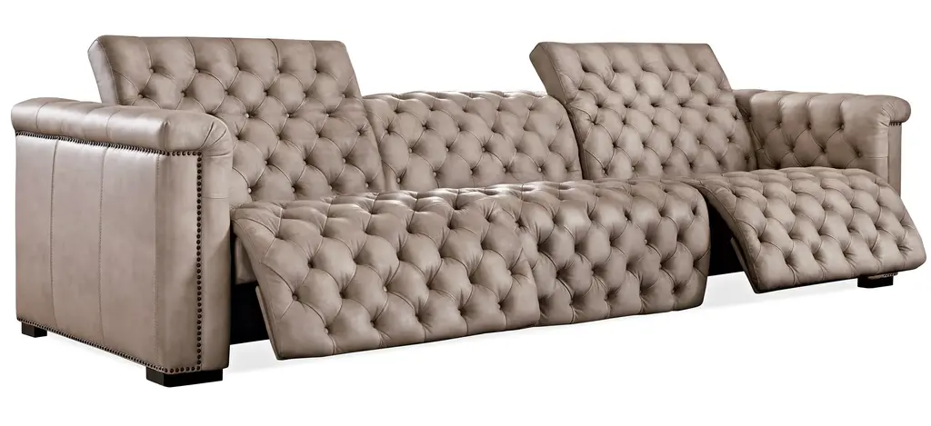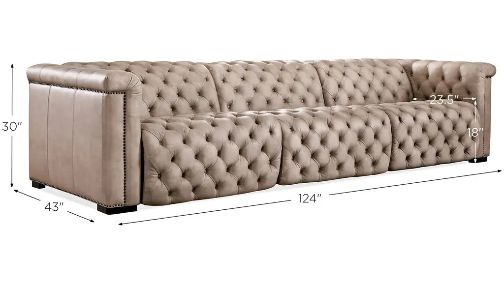 Inspire awe with your family and friends, who will never believe a sofa as stunning as the Savion Grandier has two power reclining ends, and that each of the 3 seats features an adjustable headrest. The individually operated headrests invite you to lean back and relax your upper body while watching TV, reading or conversing, and the end seating units transform to recliners with a smooth power control button, offering exceptional comfort. Savion blends classic elegance with modern flair, combining traditional button-tufted tailoring with a sleek profile back. The beautiful Giovanni Taupe leather cover is finished for stain protection and is hand wiped, giving each piece authenticity and sophisticated appeal.