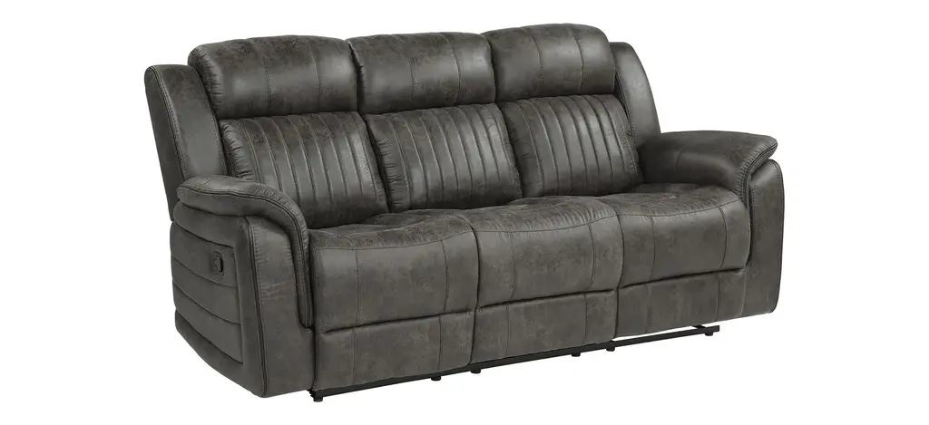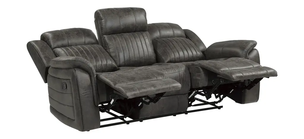 Spivey Collection provides a platform for your relaxing downtime. From the classic transitional style to the versatile neutral color of the brown-ish gray polished microfiber fabric covering, this sofa is the perfect addition to your living room. Plush seating features vertical tufting, pillow-top arms, enhanced by the dual end recliners of the sofa. The reclining mechanism is engaged with a pull of the side mounted tabs, taking you from seated to prone in an easy motion.