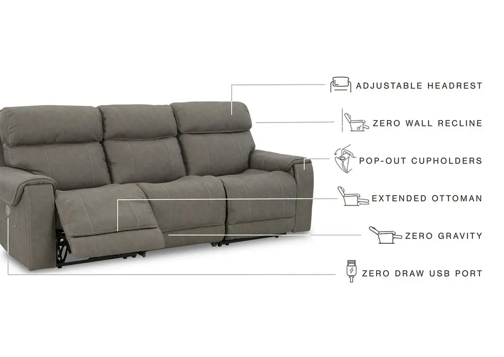 Destination: chic comfort. The Starbot power reclining sofa launches your living room into superior form with stellar attention to detail. Exemplifying attainable luxury, its handsome hue has an air of sophistication you’ll long to lounge in. And when you’re done basking in the glow of its sleek style, recline with indulgent motion features to welcome head-to-toe relaxation. Weight 304.000 lbs. (136.8kgs.)