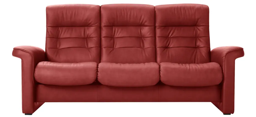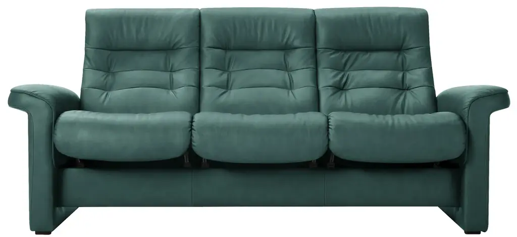 If you want to add contemporary style and sophistication to your home, the Stressless Sapphire leather reclining high-back sofa is the right choice. Sleek curves and top-grain leather upholstery set the tone for your living room or den, and deep seating with pushback reclining gives you the opportunity to sit back and relax.