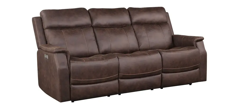 The Valencia Dual Power Reclining Sofa with gentle shaped seats is the perfect addition to your living space. Featuring a power headrest and power footrest in a clean contemporary silhouette with attention to detail in the hand stitched accents. A control panel on each end controls the power and comes with a convenient USB charging port.