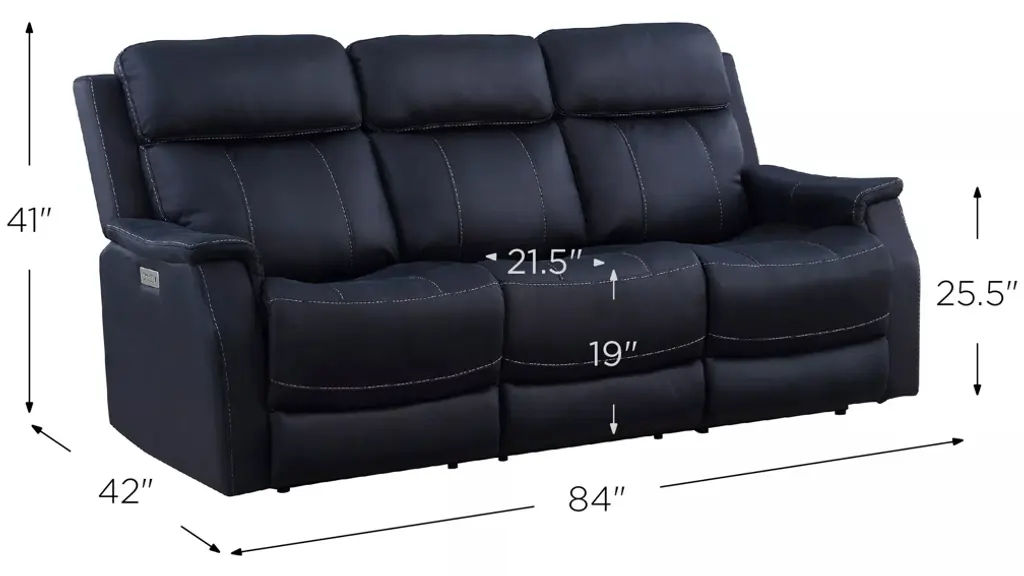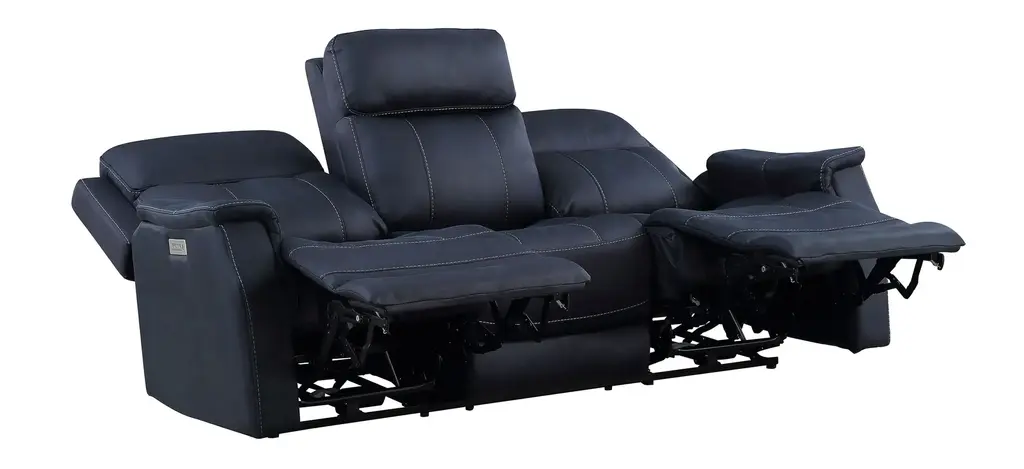 The Valencia Dual Power Reclining Sofa with gentle shaped seats is the perfect addition to your living space. Featuring a power headrest and power footrest in a clean contemporary silhouette with attention to detail in the hand stitched accents. A control panel on each end controls the power and comes with a convenient USB charging port.
