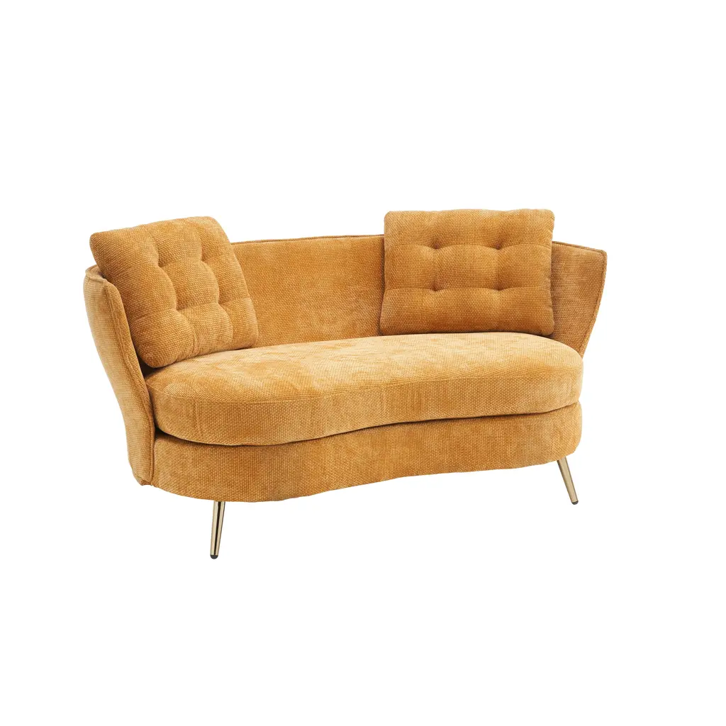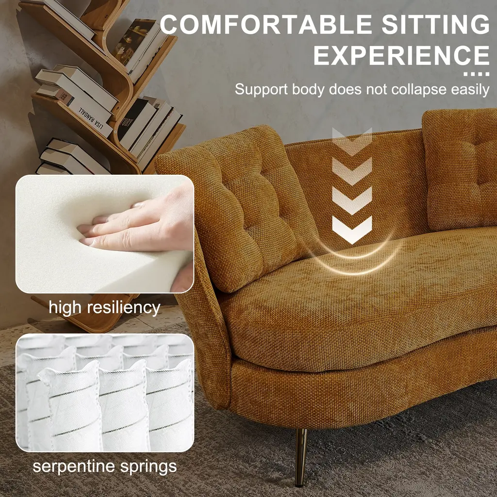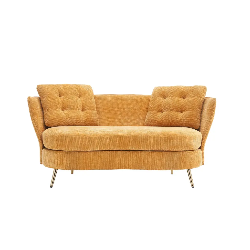 Velvet Curved Loveseat Upholstered Couch Deep Seat Sofa With 2 Tufting Pillows, Recliner Sofa Lounge Couch For Living Room - Yellow