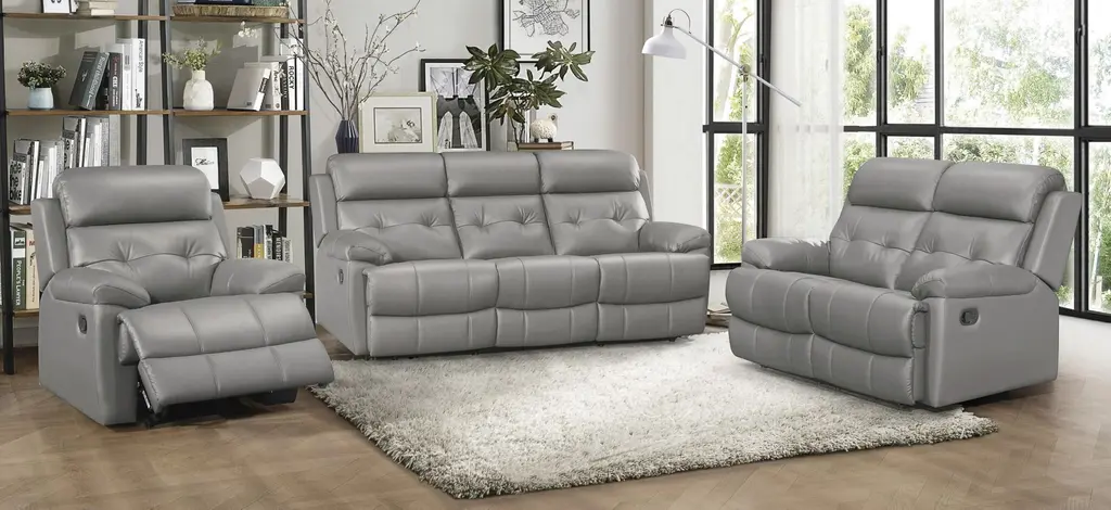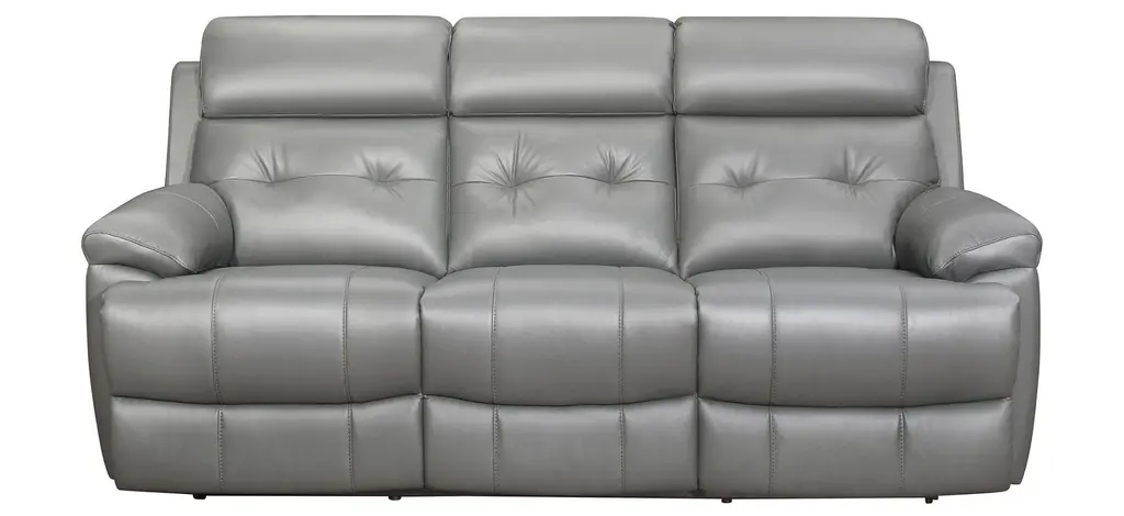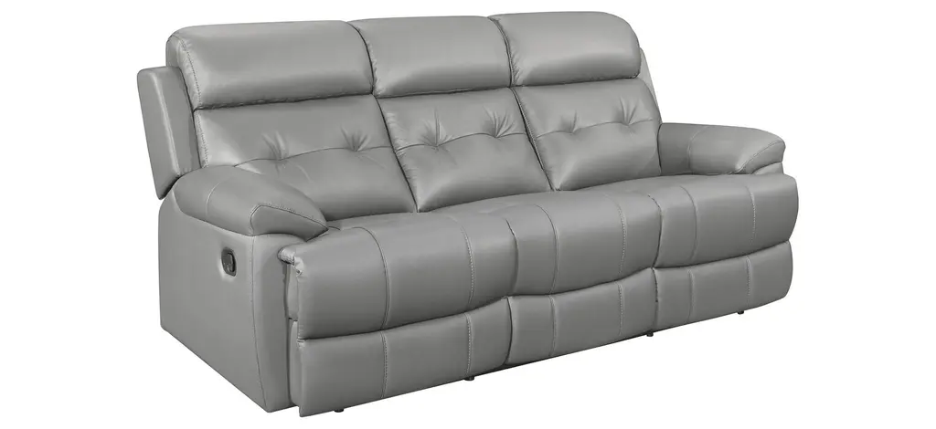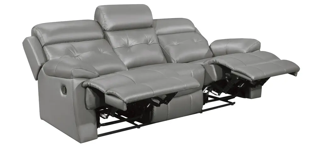 The Wallstone leather double reclining sofa was designed for placement in your modern living room. Gray top-grain leather-match coverings - lend elegant accent to the decorative preferences that fill your space. Manually engaged motion mechanisms allow for quick transition from seated to prone with the quick pull of a tab.The Wallstone leather double reclining sofa was designed for placement in your modern living room. Gray top-grain leather-match coverings - lend elegant accent to the decorative preferences that fill your space. Manually engaged motion mechanisms allow for quick transition from seated to prone with the quick pull of a tab.