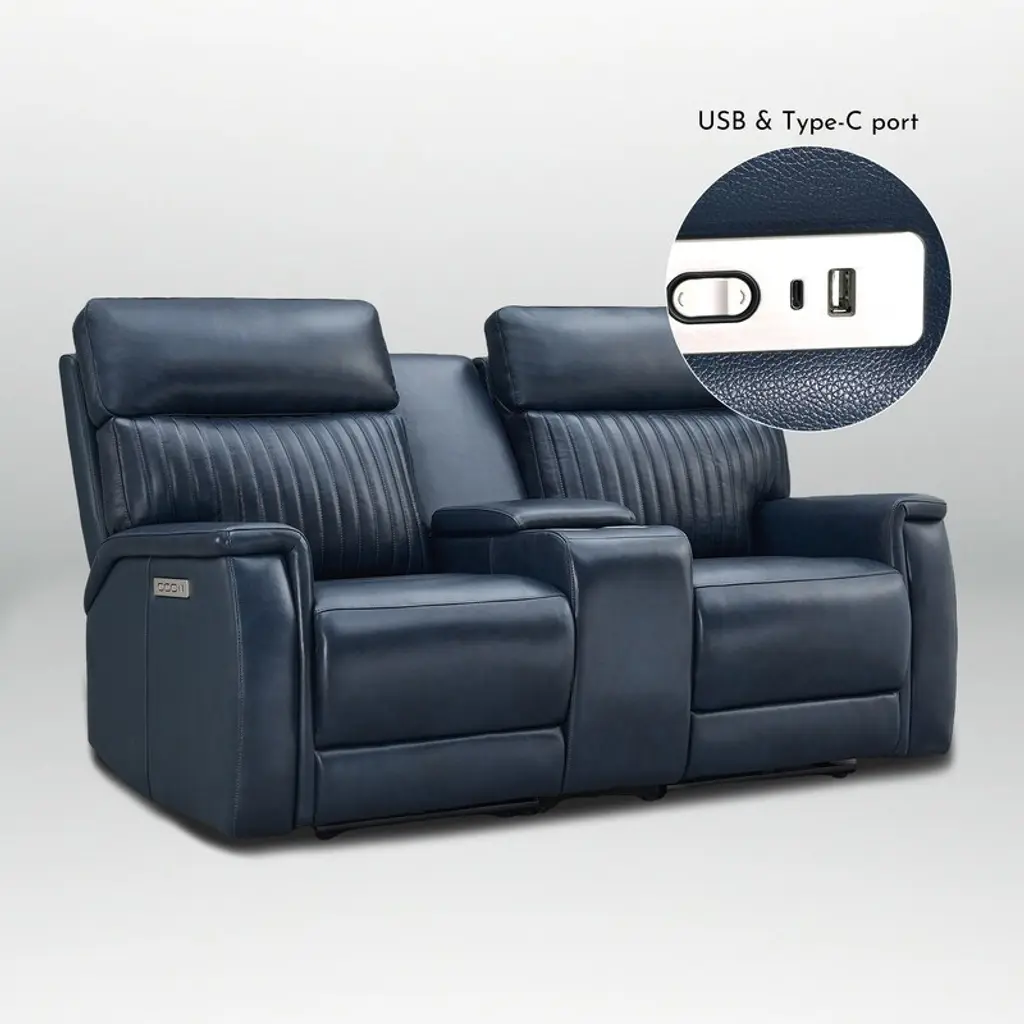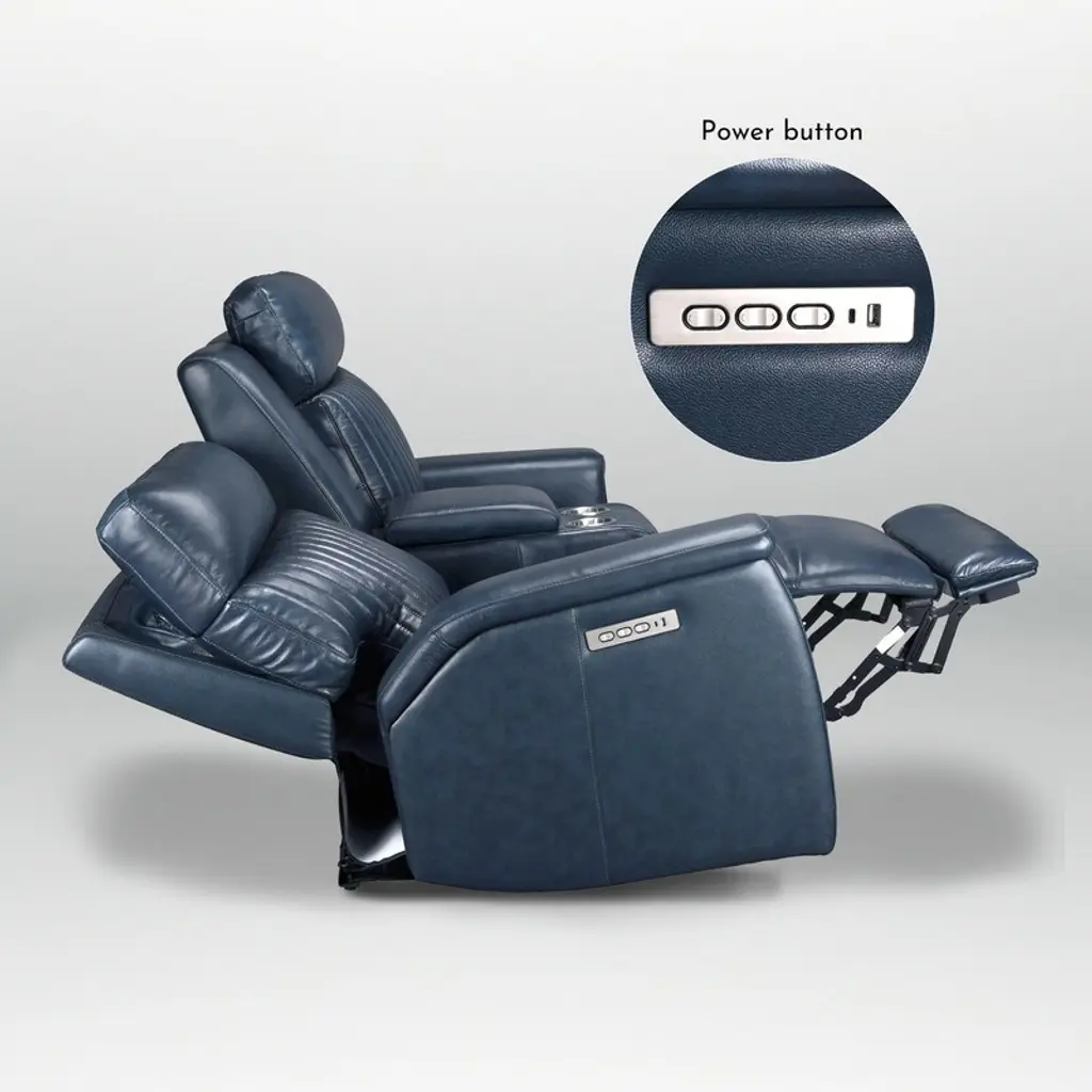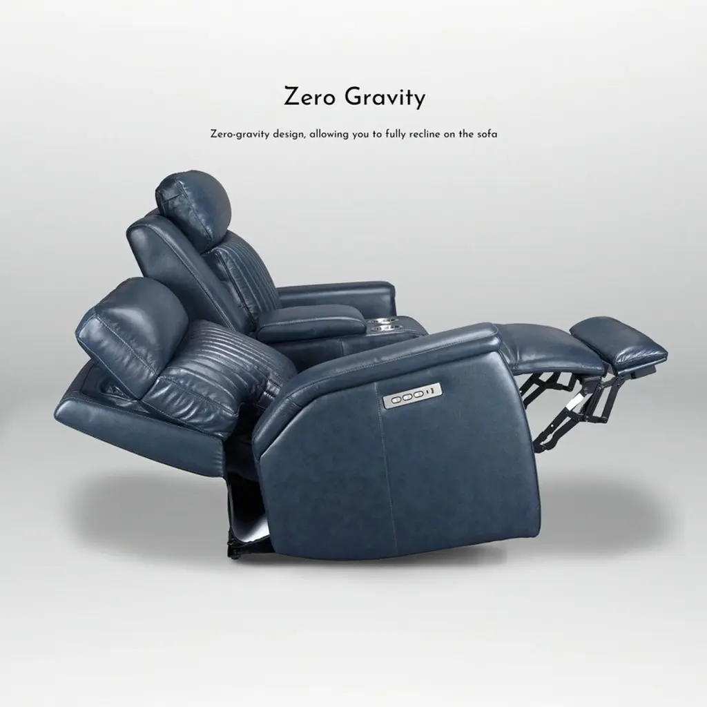 73'' Leather Zero Gravity Power Reclining Loveseat With Power Headrest And Power Lumbar,usb&usb-C Port - Blue