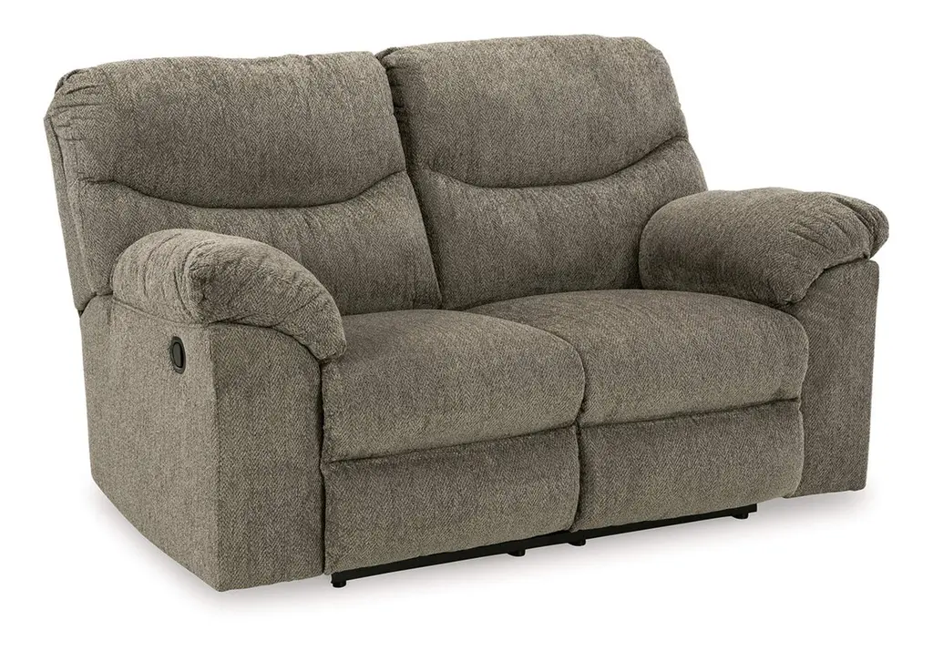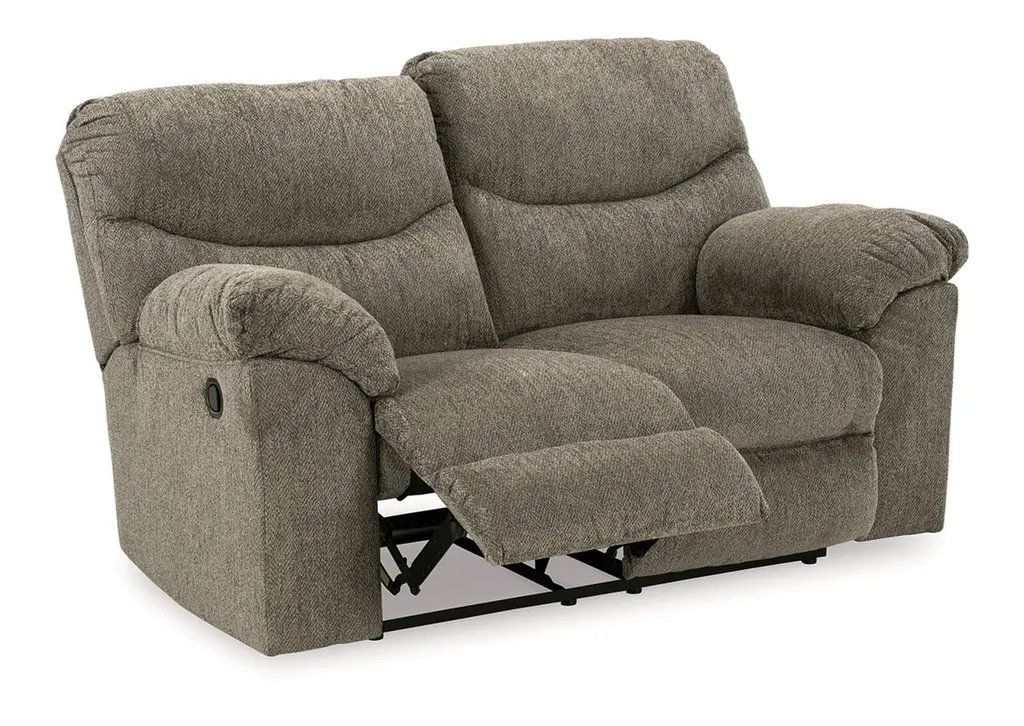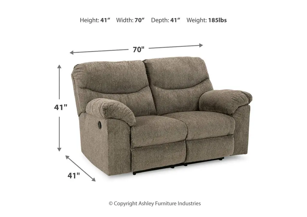 Sincere in its styling, the Alphons reclining loveseat invites a relaxed sensibility into your space. Its neutral upholstery has a universal appeal, with pull-tab reclining making it easy to kick back in comfort. Providing high-quality functionality at an affordable price, this loveseat marries well with a myriad of design aesthetics. Weight 185.000 lbs. (83.25kgs.)