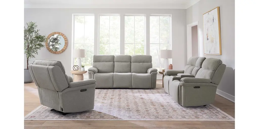 When it's time to relax, the Andre Power Reclining Loveseat with Console makes it easy to settle in. Generous, plush seating and double-padded arms offer comfort built for two, while the center console with cup holders keeps drinks and remotes close at hand. The space-saving wall-hugger design and power-adjustable headrests deliver personalized comfort without rearranging the room. USB ports are built into the controls, so your devices stay charged while kicking back. Hand-tailored in your choice of two soft, durable chenille fabrics, Andre guarantees enduring comfort and style.