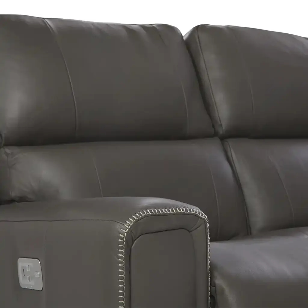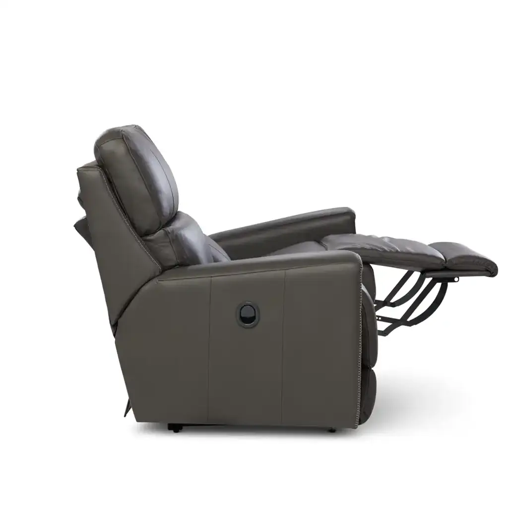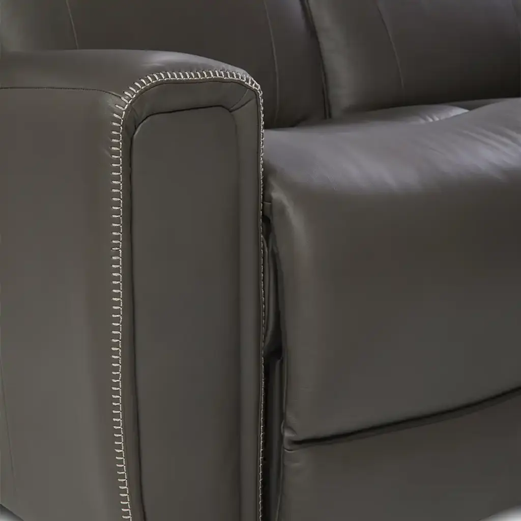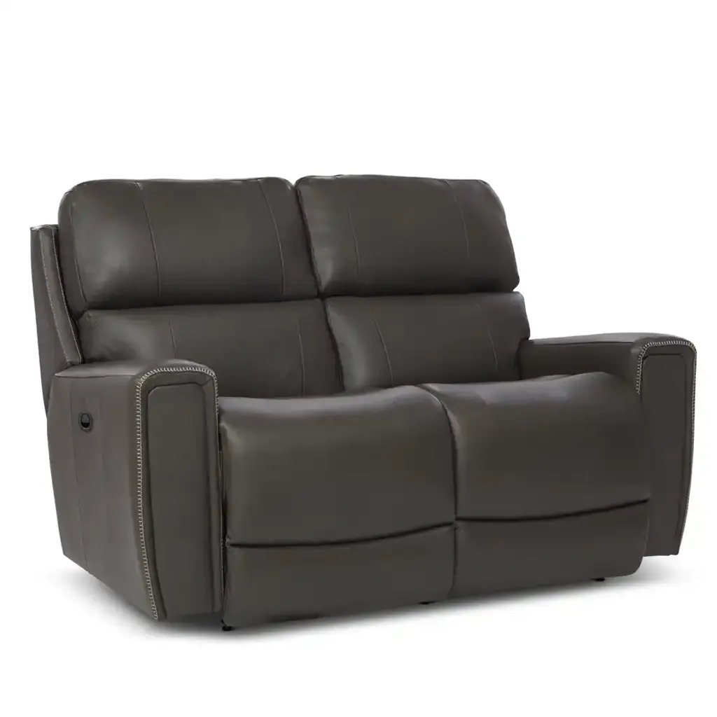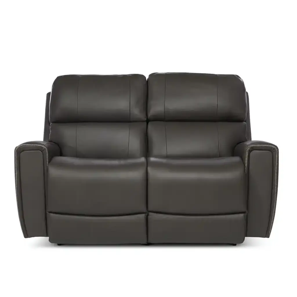 With its aerodynamic lines, the Apollo Reclining Loveseat offers a chic space for fun or tranquility. Padding-wrapped track arms highlight tall box-border backs that can recline. Sleek bucket chaise seats and legrests can adjust for luxe lounging.
