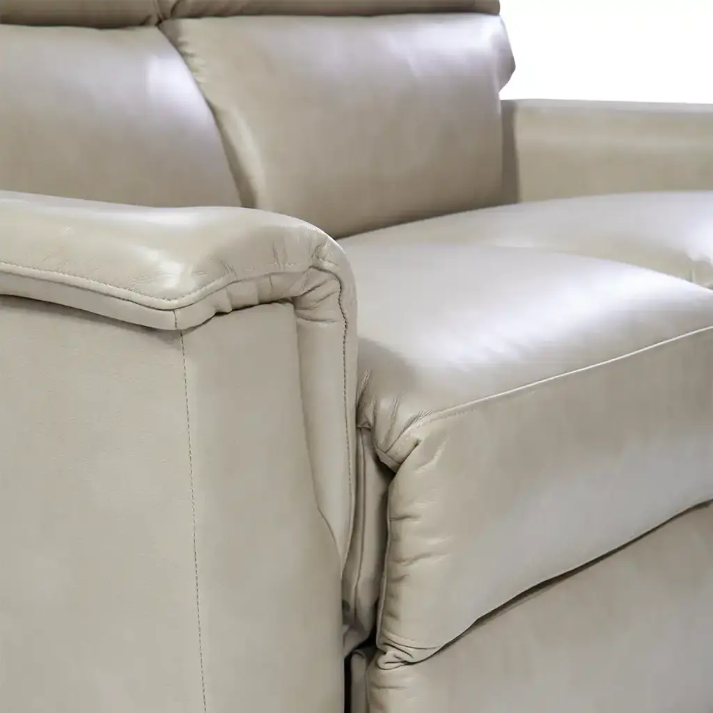 The Ava Reclining Loveseat adds a fresh curve to comfort. Soft arms flaunt a subtle flare. Tall, rounded box-border backs and chaise seats have a smooth, simple design with an organic flow of accent stitching. Adjust the seats for customized comfort!