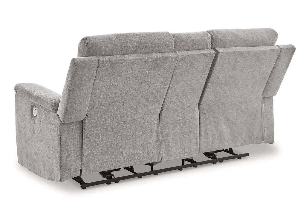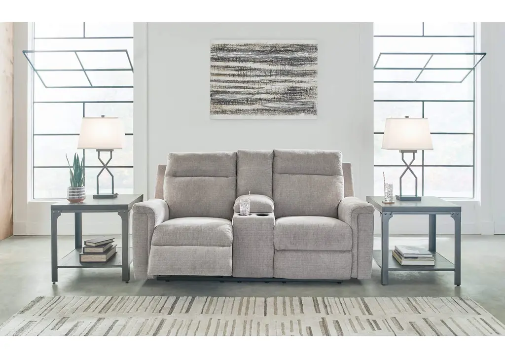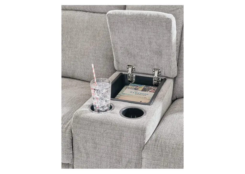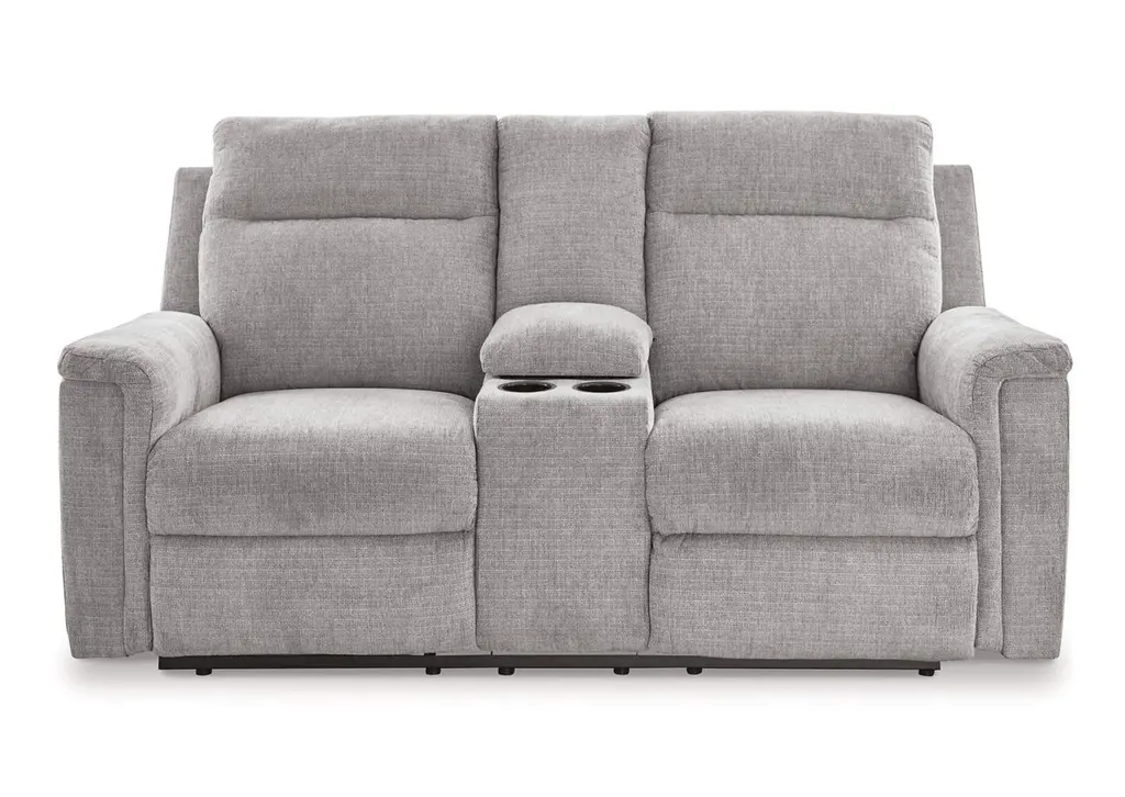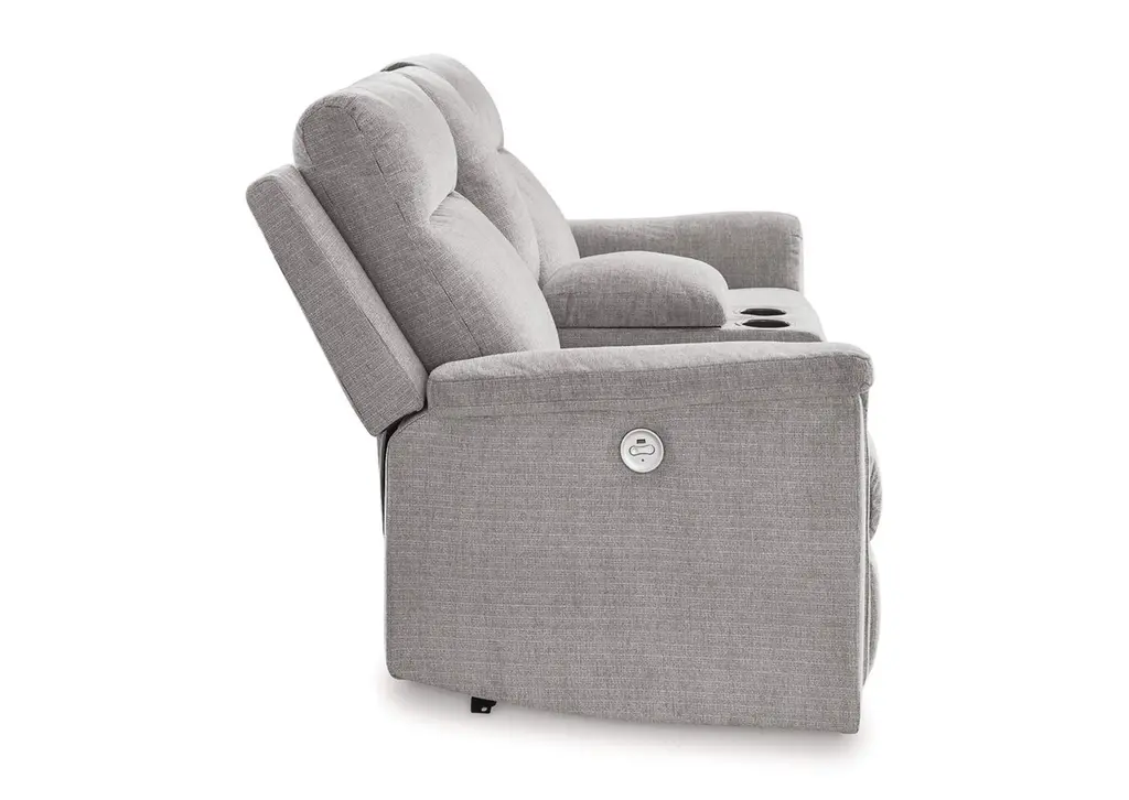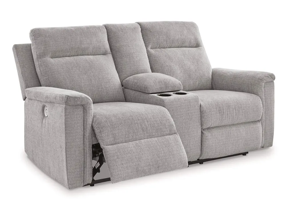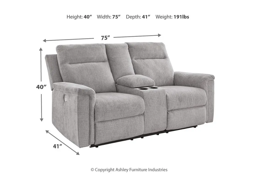 The ability to go from fully upright to relaxed and stretched out, all at the touch of a button, awaits. A beautiful blend of plush upholstery and casual style, the Barnsana power reclining loveseat with console invites you to sink into ultimate comfort. Easily tuck away remotes or gaming controllers and keep drinks close by with its handy console. Whether you're hosting guests or lounging alone, you’ll find it hard to leave your living room—that’s a given. Weight 199.000 lbs. (89.55kgs.)