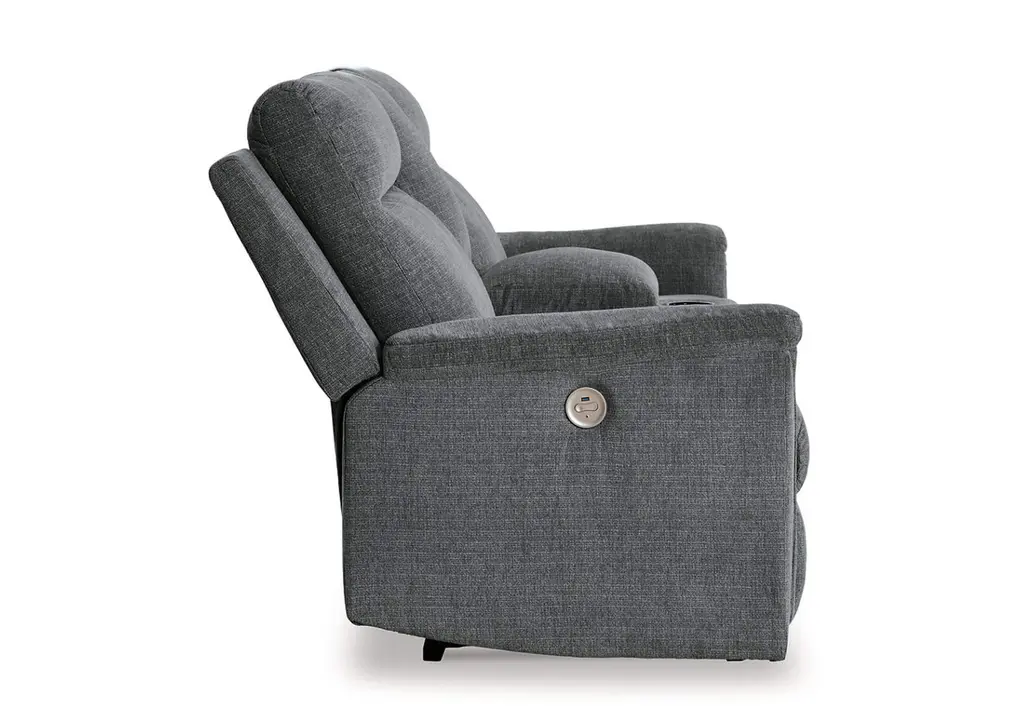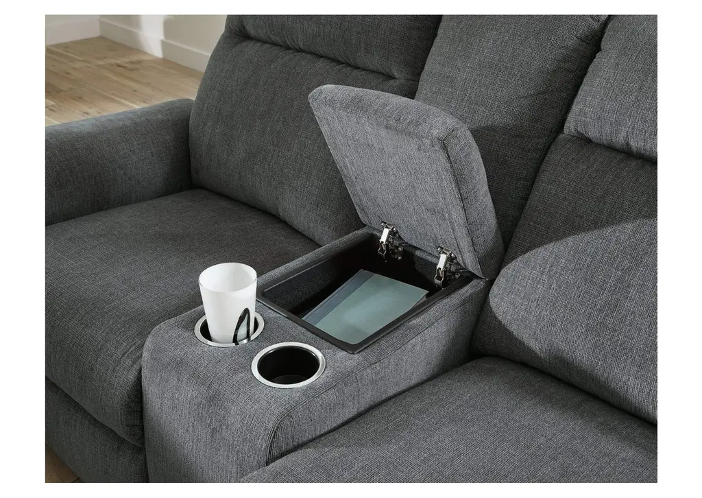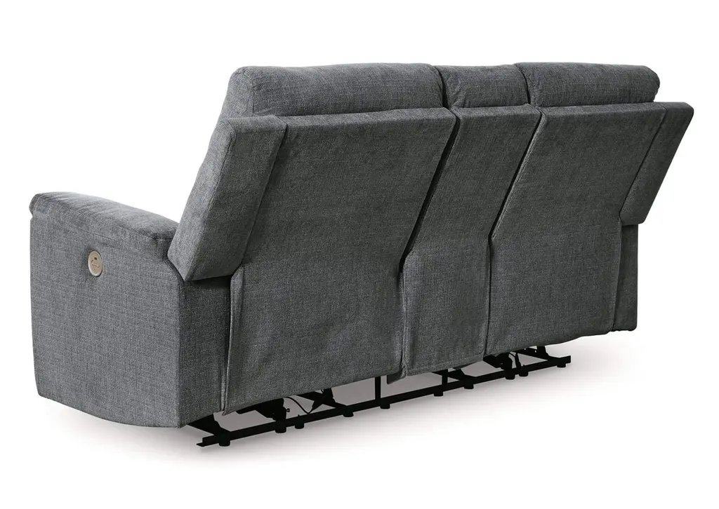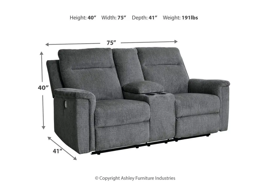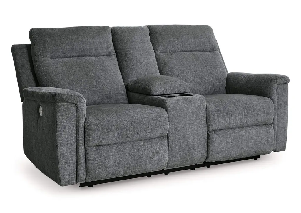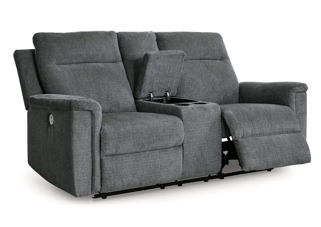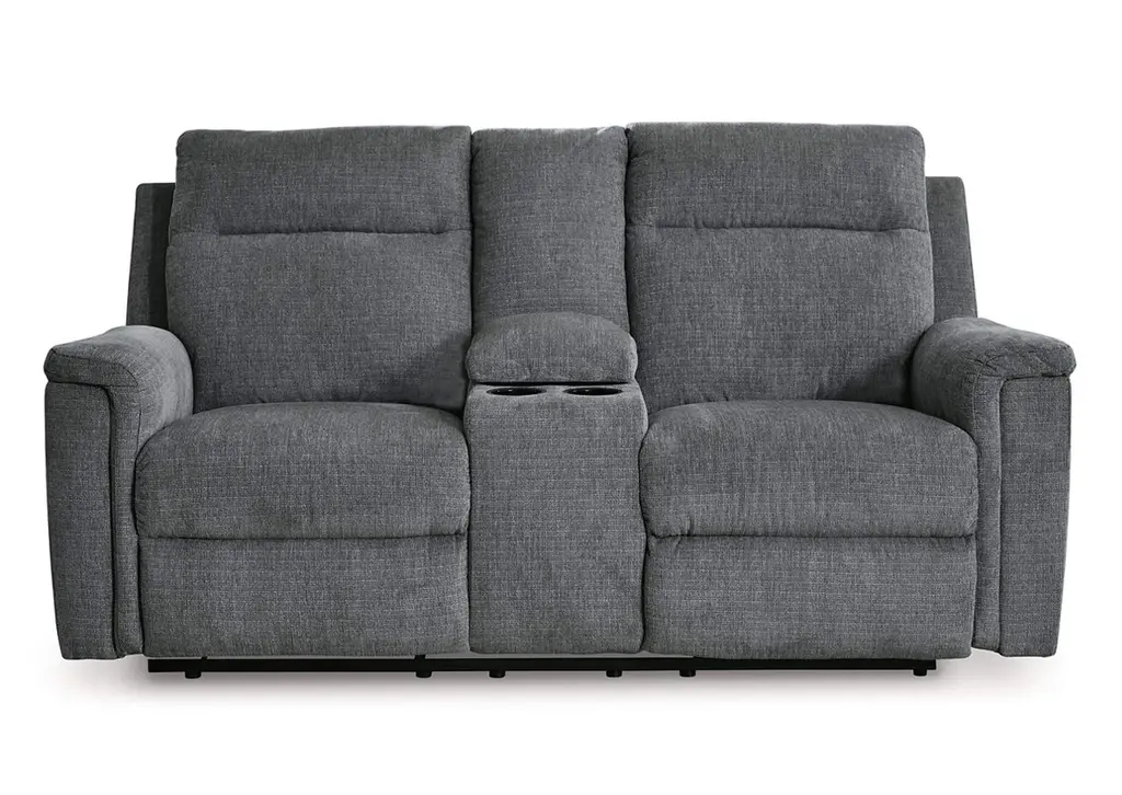 The ability to go from fully upright to relaxed and stretched out, all at the touch of a button, awaits. A beautiful blend of plush upholstery and casual style, the Barnsana power reclining loveseat with console invites you to sink into ultimate comfort. Easily tuck away remotes or gaming controllers and keep drinks close by with its handy console. Whether you're hosting guests or lounging alone, you’ll find it hard to leave your living room—that’s a given. Weight 199.000 lbs. (89.55kgs.)