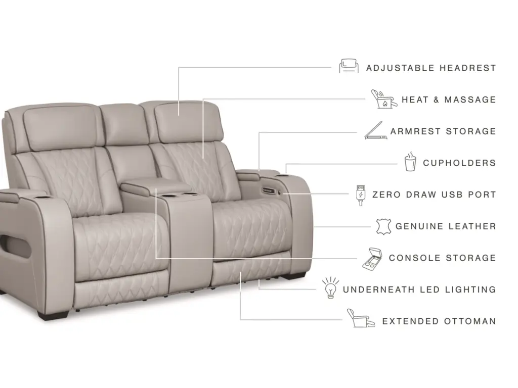Ready to take your reclining experience to the next level? Then sit up and take notice. With the Boyington power reclining loveseat, ultimate relaxation is at your fingertips. Experience the pure bliss of an air massage system and heated seats at the touch of a button. Plus the luxurious diamond-stitched upholstery is easy on the eyes, adding elegance to any space.