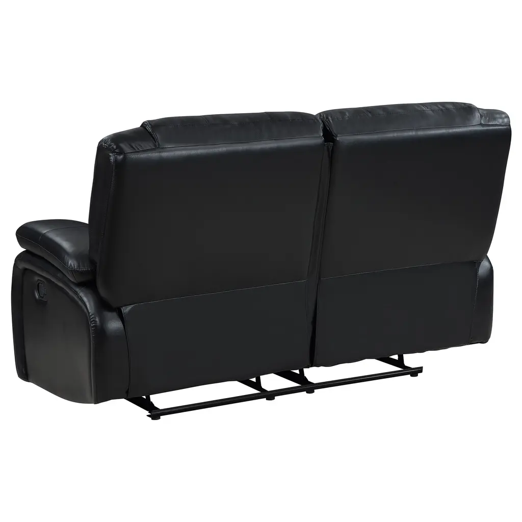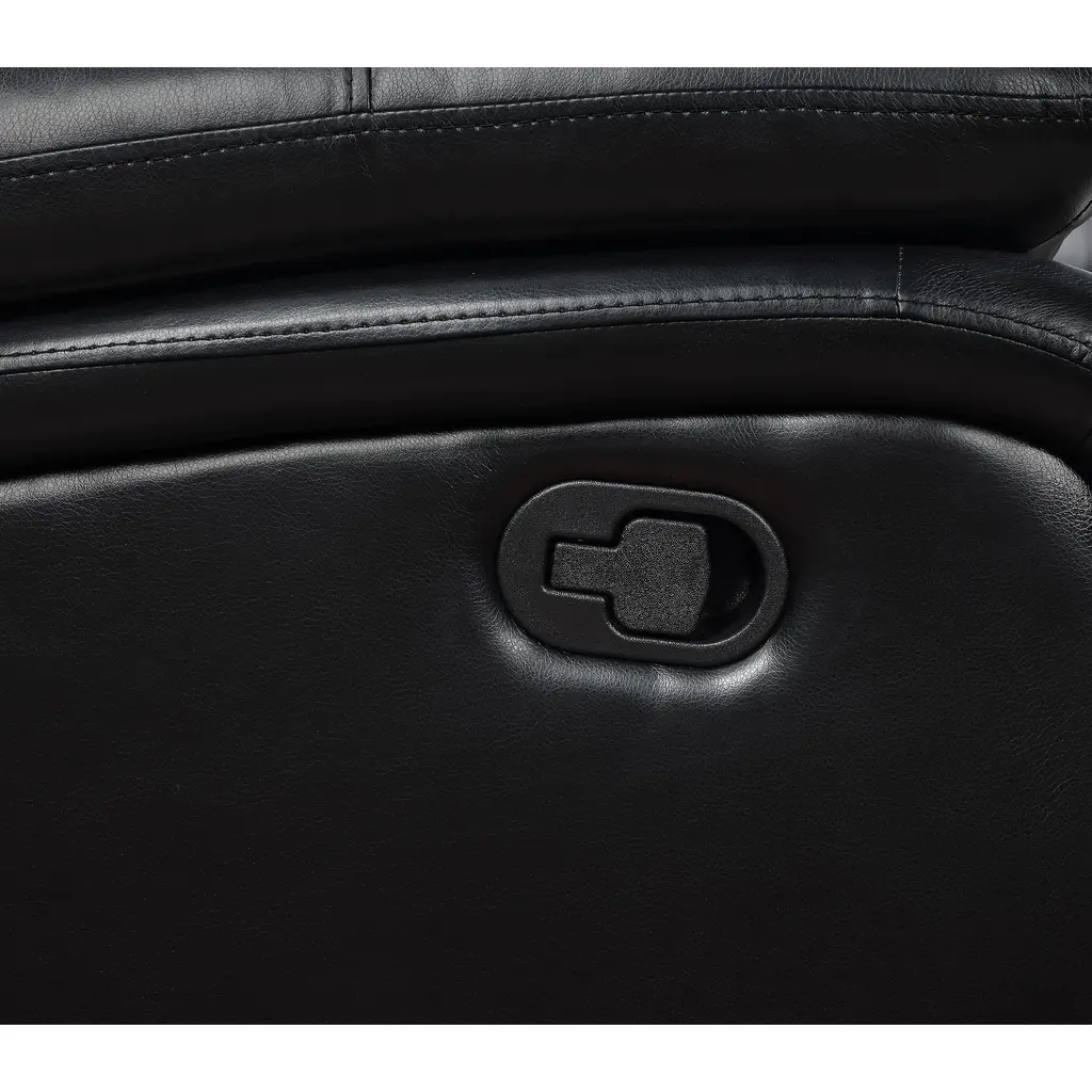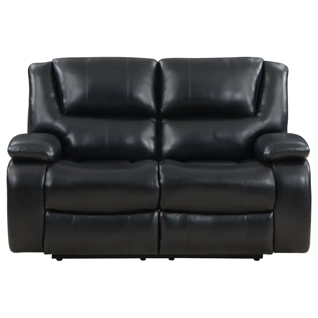 Make seating a primary function in a living space with this elegant two-seater reclining loveseat. Kick back in comfort to watch sports, movies, or to read, enjoying a smooth red leatherette upholstered loveseat with plump cushioning in structured backs and armrests. A wall-hugger design saves space as it operates reclining functions without disturbing its back edge. Manually recline attached seats using a side button. Choose this loveseat to furnish a compact apartment space or embellish a living room or family room. Options: Item Contents: Item Bullets: Materials: Features: Dimensions: Accessories pictured are NOT included.