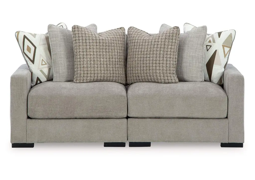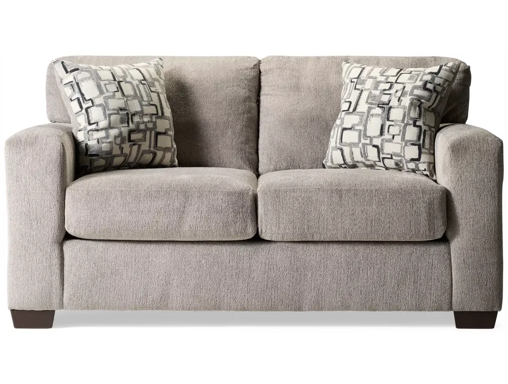 The pleasing lines and soft neutral fabric of the Carson 2-pc. loveseat beckon you to blissful, easy comfort. You'll be on cloud nine with its oversized, rounded silhouette, unique angles and retro vibe. Essential power features keep it grounded in functionality and the cool accent pillows are simply delightful.
