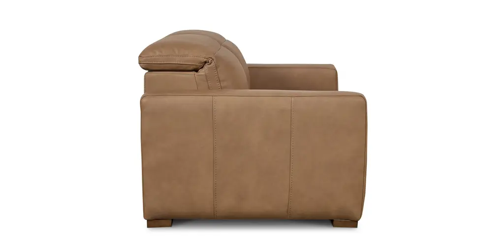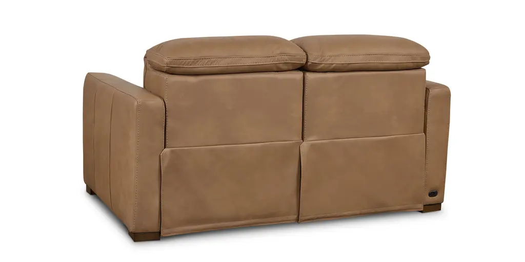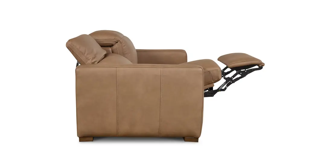 The Caswell Leather Power Reclining Loveseat has room for two to recline in full-tilt comfort. Both powered seats operate separately, offering individual control of your recline that can extend all the way to Zero Gravity. The Caswell's frame-within-a-frame design allows you to place this loveseat against a wall if desired while the power headrest lowers to the flat position when not in use, maintaining a low modern profile. Leather, in two color options, lines the full interior of the loveseat so it warms or cools to your touch as you relax. The loveseat can be viewed from all sides thanks to the vinyl match exterior back. If you prefer cordless power, visit a Bassett store for the battery pack option.