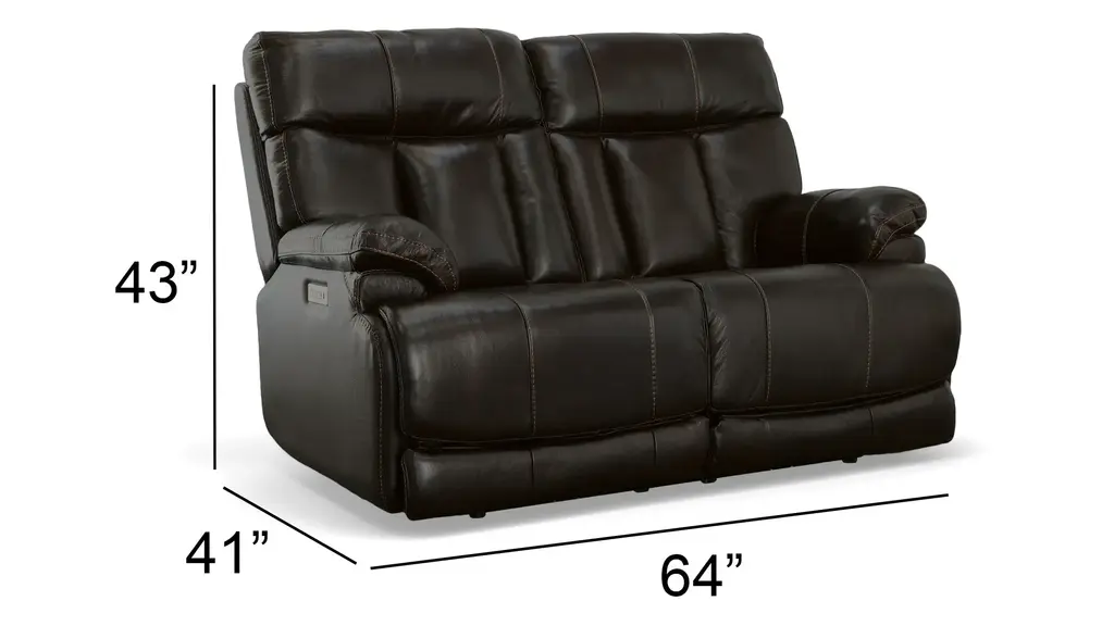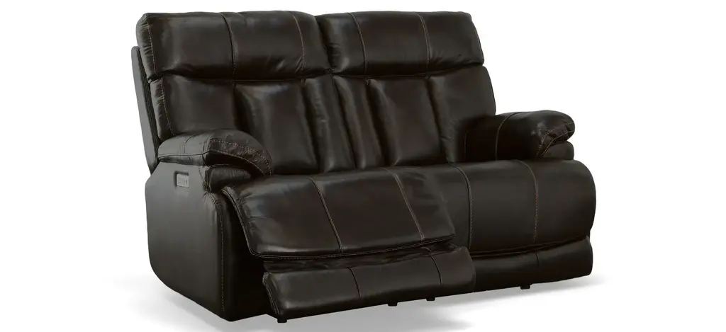 Sink into the comfort of a power recliner built for two with the Clive Power Reclining Loveseat. This high-comfort, high-quality loveseat has a distinctive look with pillow pad armrests and flat seat cushions, along with elegant heavy thread stitching and a channeled back cushion. Built-in power controls on either side of the loveseat independently adjust the headrests, footrests, and lumbar support to dial in both sitters' ideal level of comfort. Easily shift from sitting to reclining to sleeping with a lay-flat mechanism, and keep your feet and legs elevated with a fully extended footrest that helps improve circulation. With Clive, you get quality that lasts thanks to our DualFlex Spring System that ensures a wide range of motion. Attached seat and back cushions made from high-density foam provide a supportive sit. And with a USB port built into the power control, you can keep devices charged and close at hand.