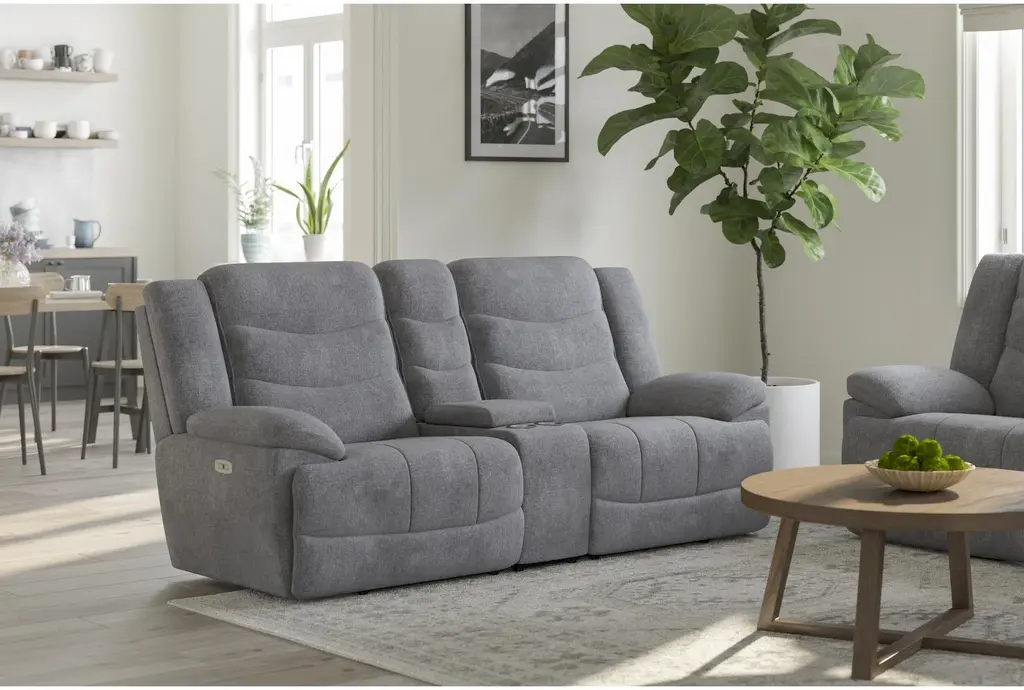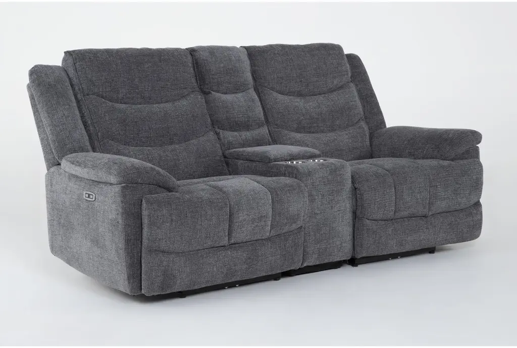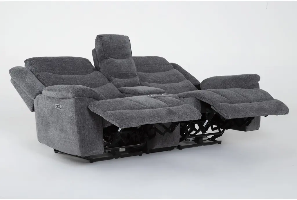 Cruz Smoke Grey 3 Piece Power Reclining Modular Console Loveseat With Storage Cupholders & Usb