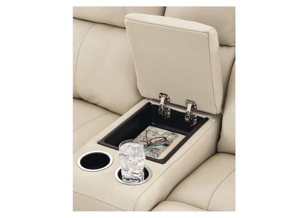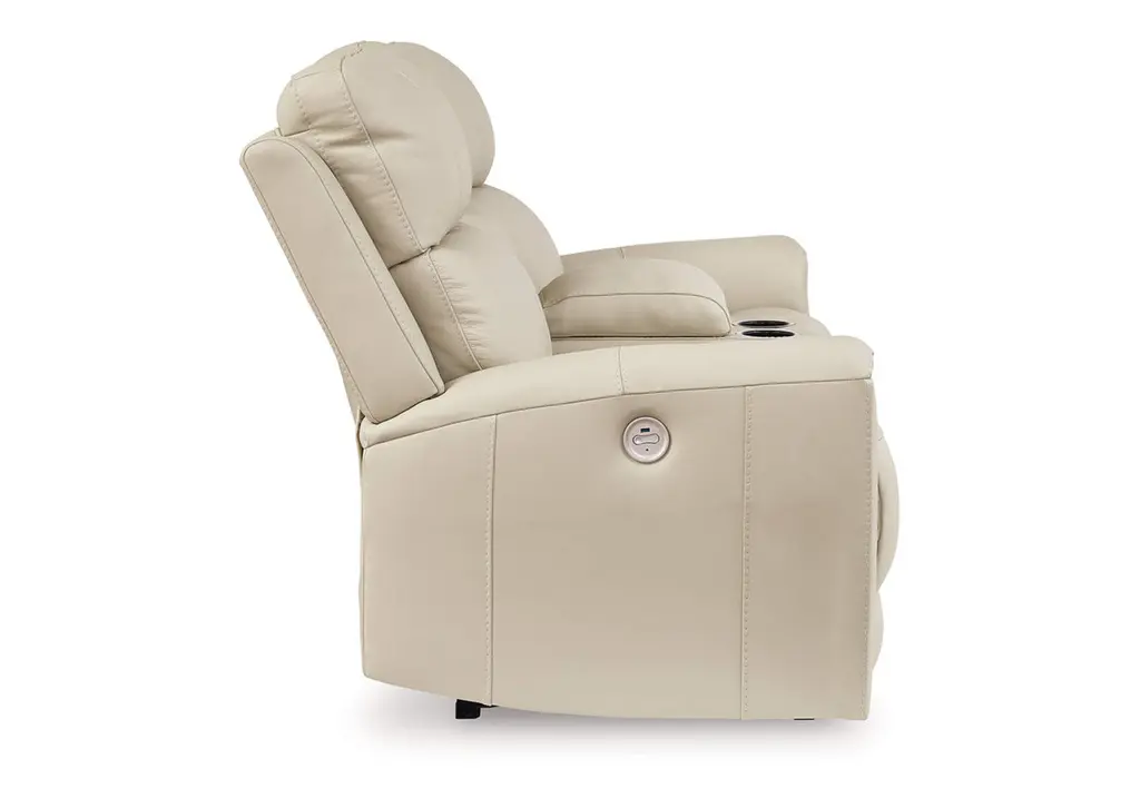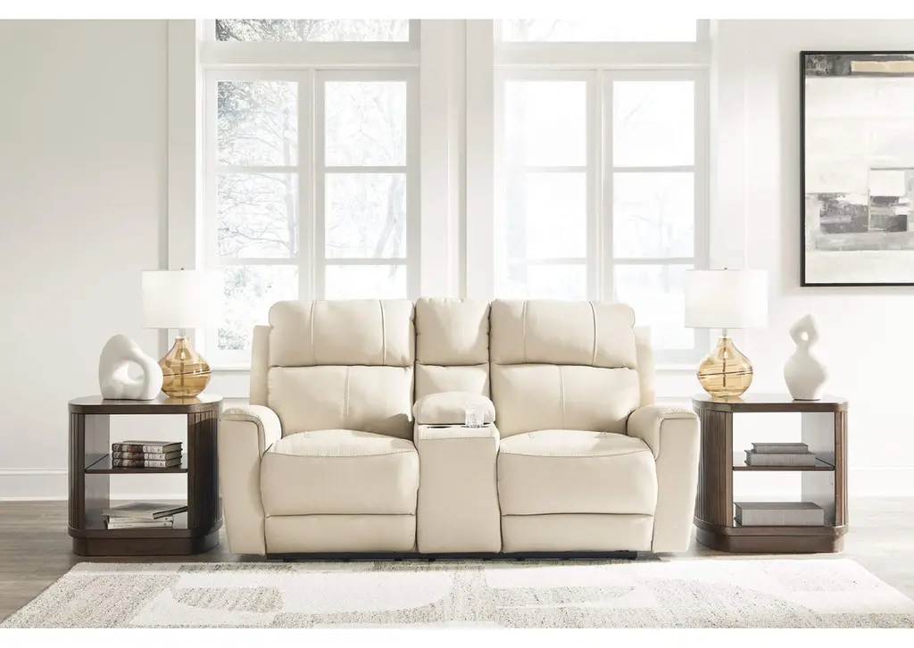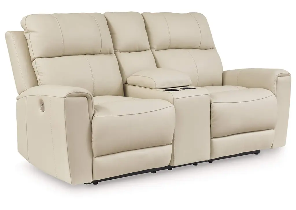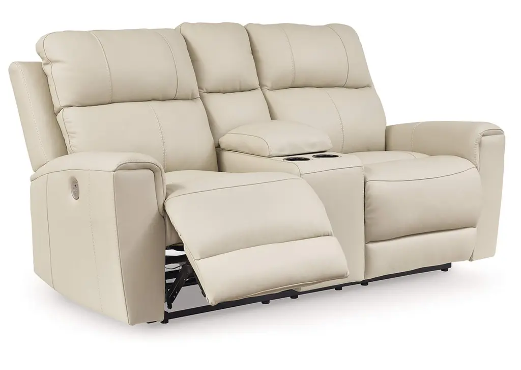 Focus on function. The practical Dahlmoore power reclining loveseat with console balances contemporary character and irresistible comfort. Its affordable, expertly matched leather and faux leather upholstery keeps your style up to speed without breaking the bank. Reclining at the touch of a button, this loveseat plays well in relaxed, luxe seating areas made for quality time. Weight 298.000 lbs. (134.1kgs.)