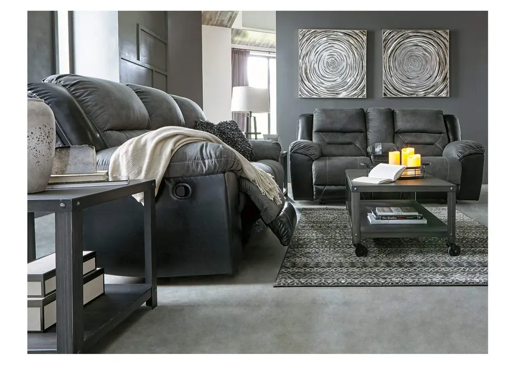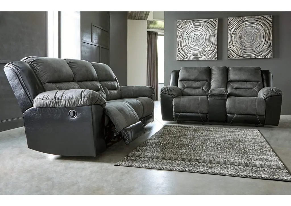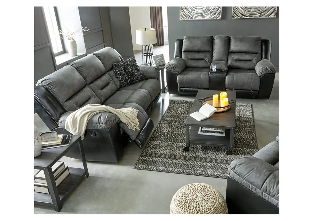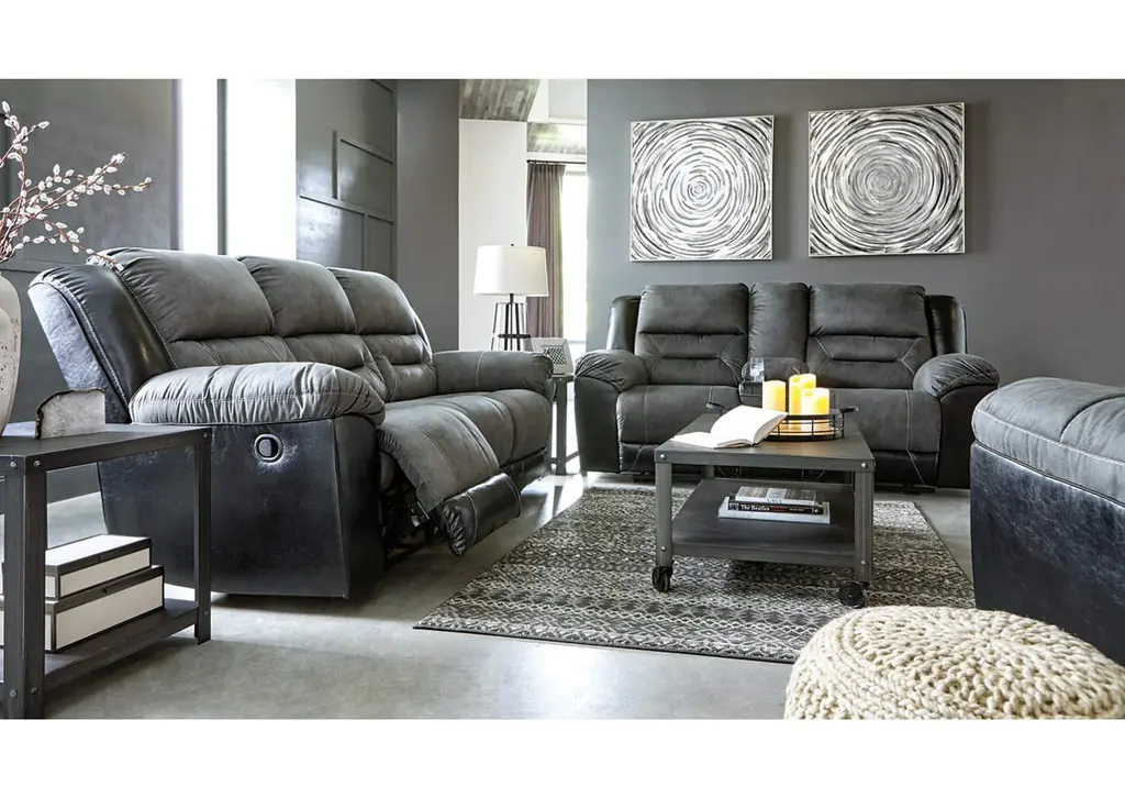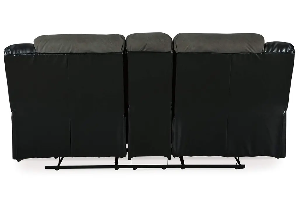 Every day is a good day with this reclining loveseat around. Take a load off and forget your worries as you ease back into the luxurious feel of suede-like fabric. Need more comfort and support for your body? Cue the deep seating and tall back. Contrast jumbo stitching adds an element of style to the cushions. Easily place drinks and small living room essentials in the center storage console with cup holders.