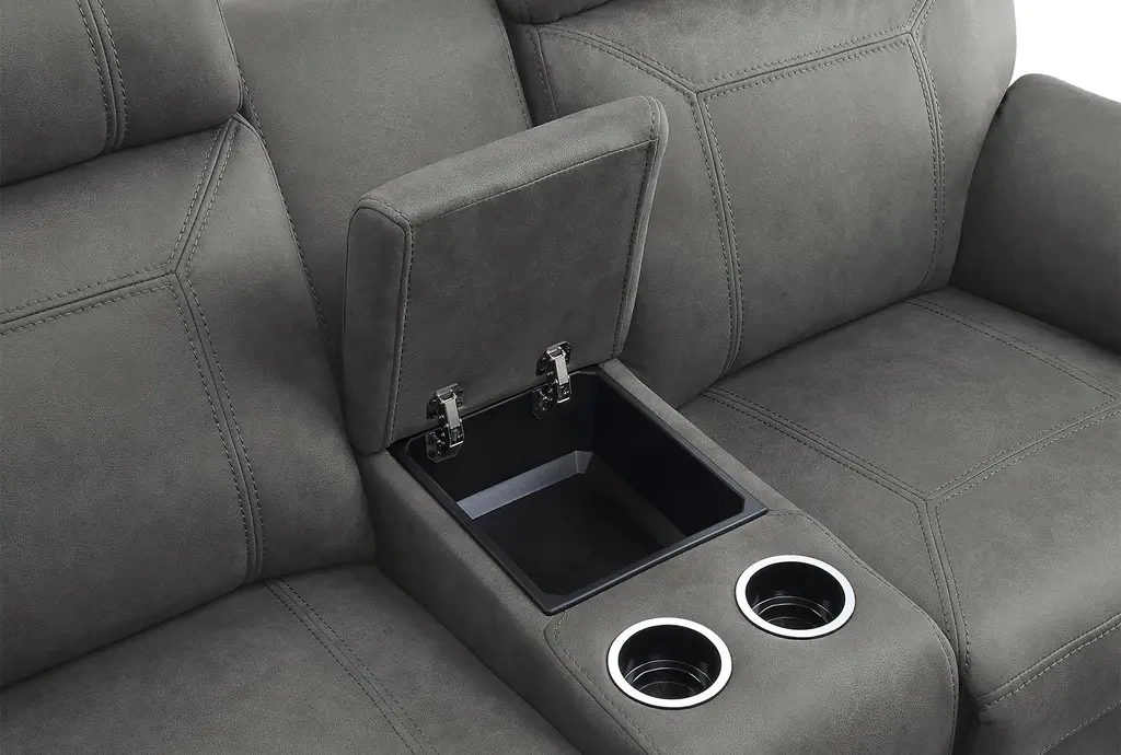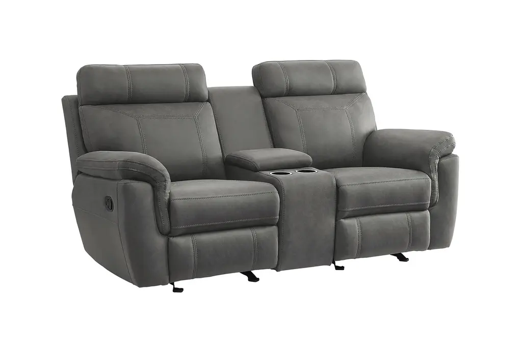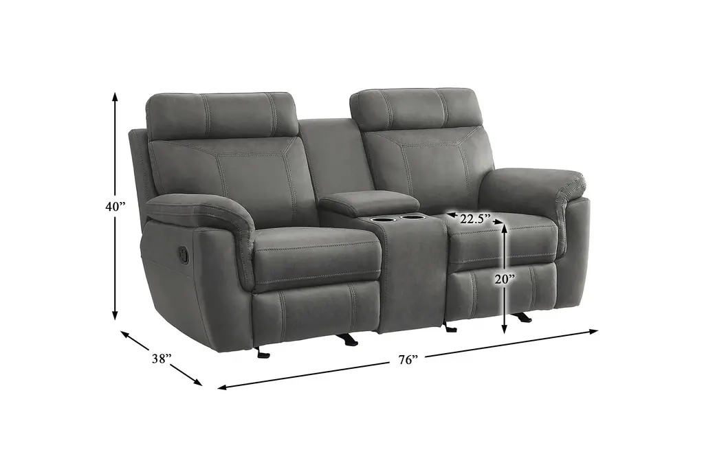 Elmont Grey Polyester 76" Manual Glider Reclining Console Loveseat