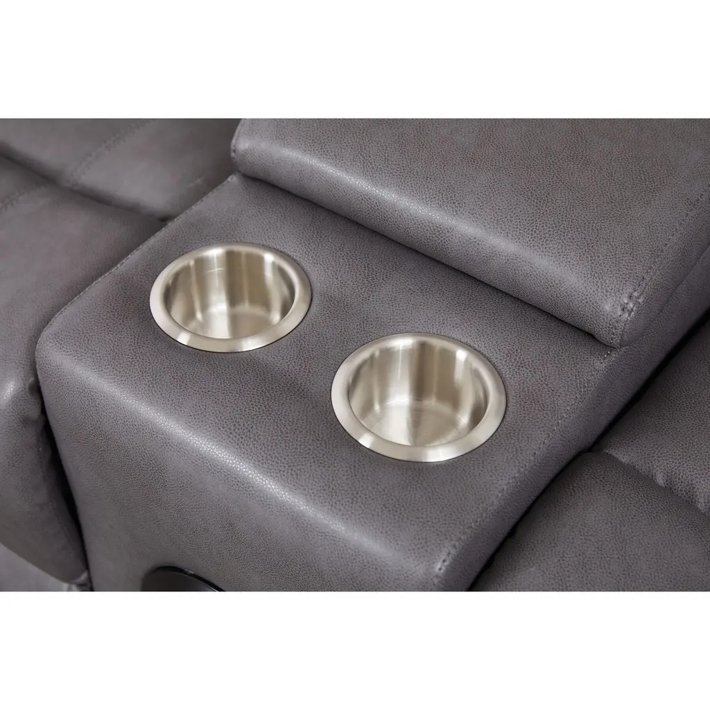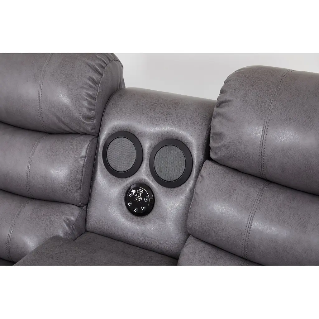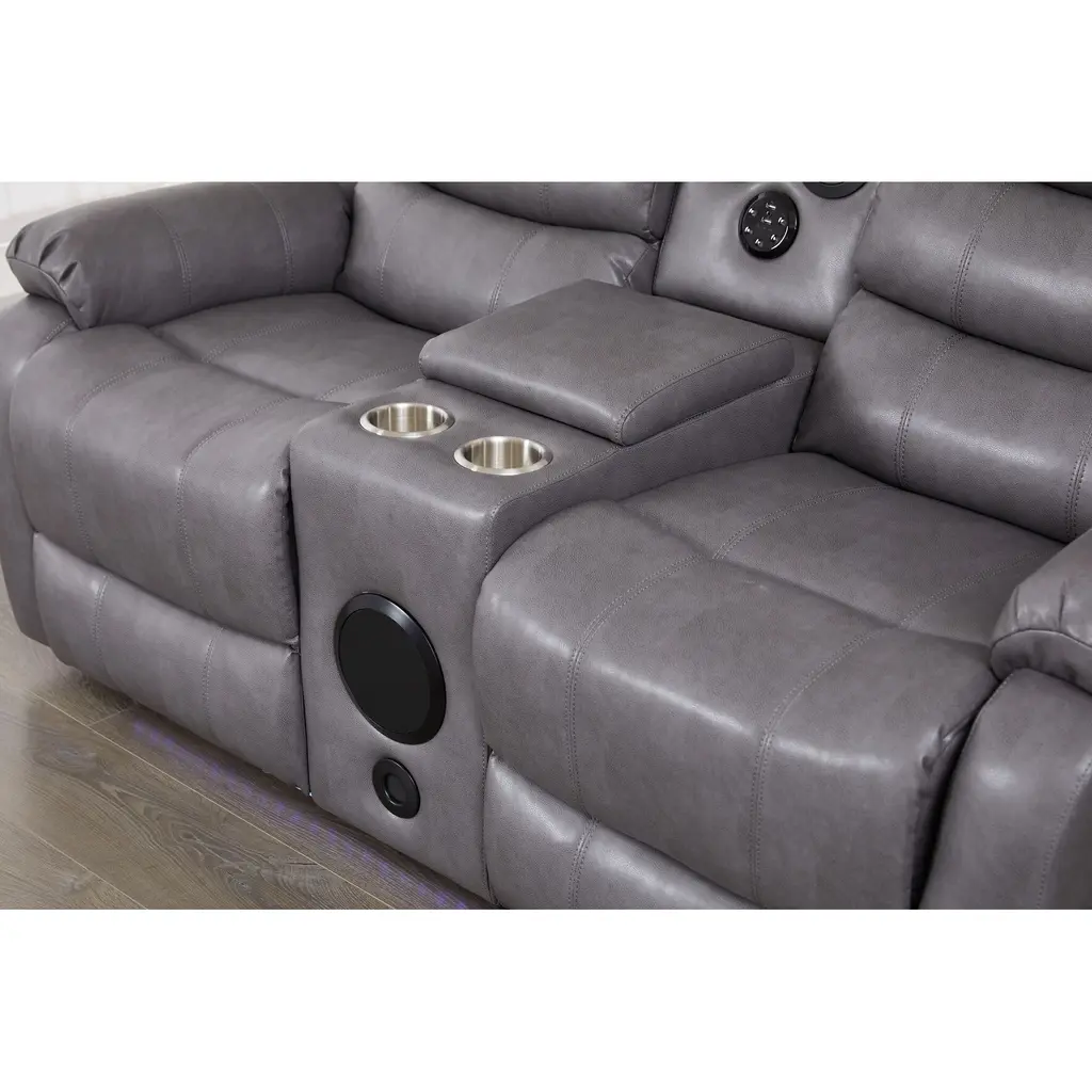 Faux Leather Manual Reclining Loveseat With Led Lights And Console With Subwoofer System - Grey