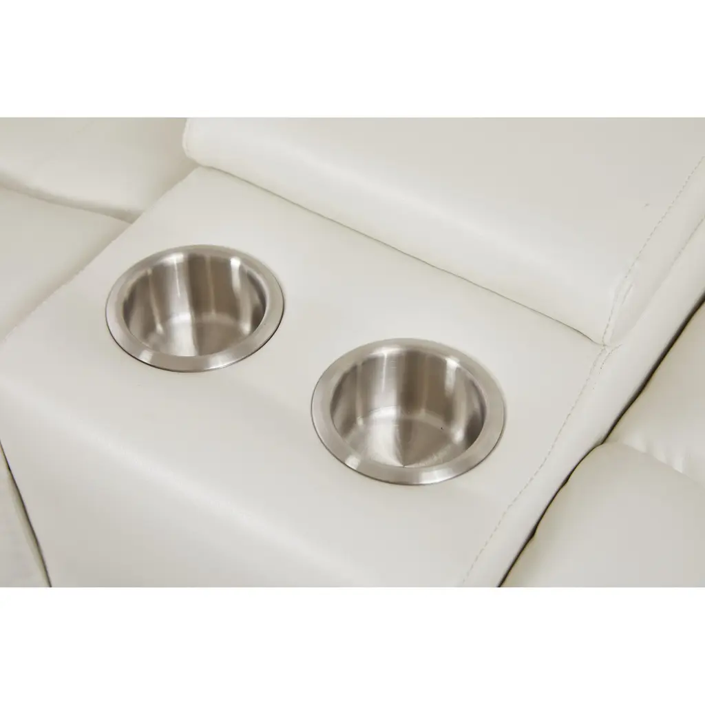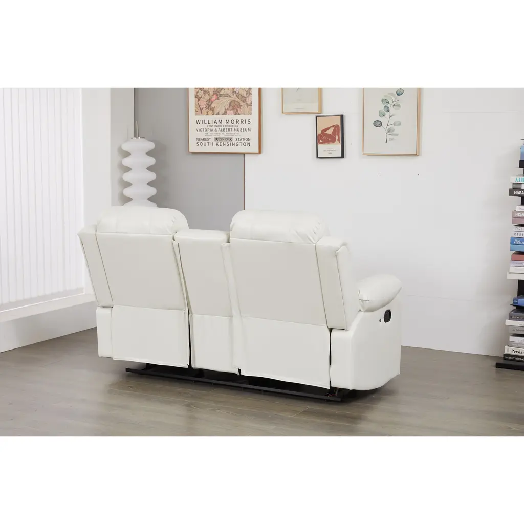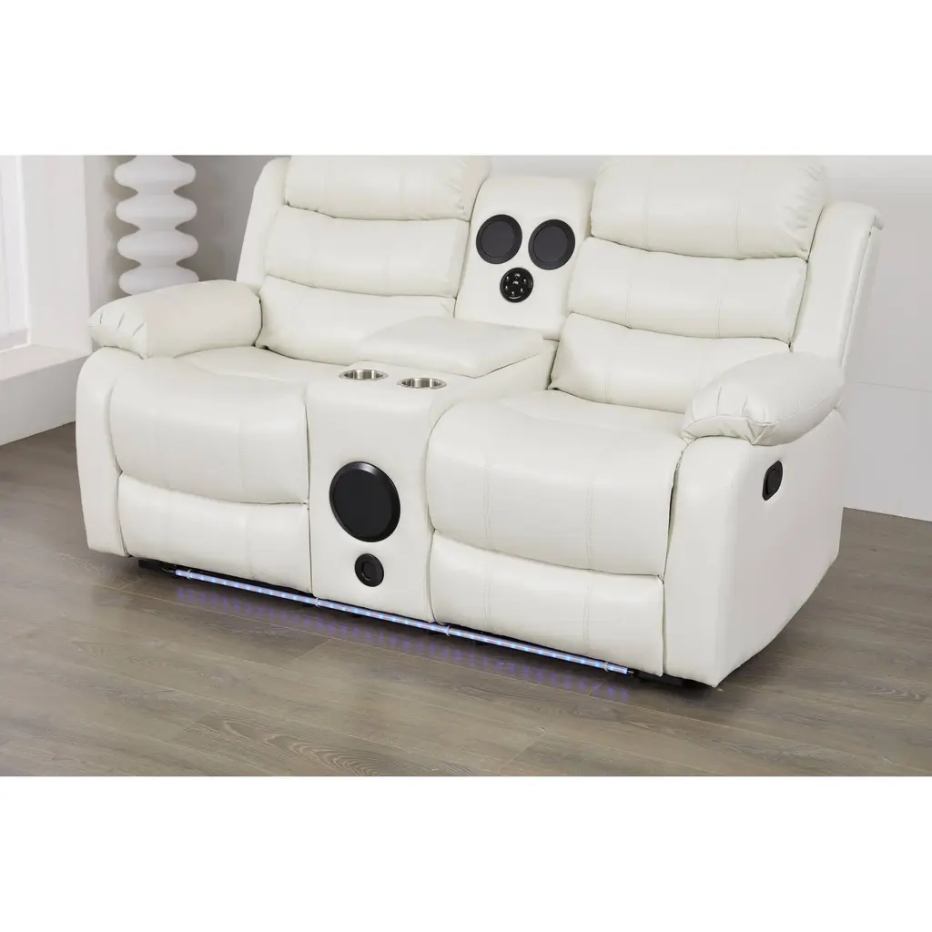Faux Leather Manual Reclining Loveseat With Led Lights And Console With Subwoofer System - White