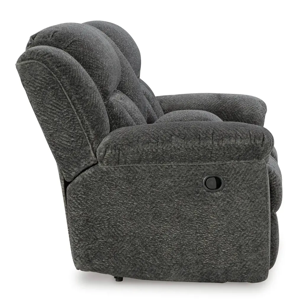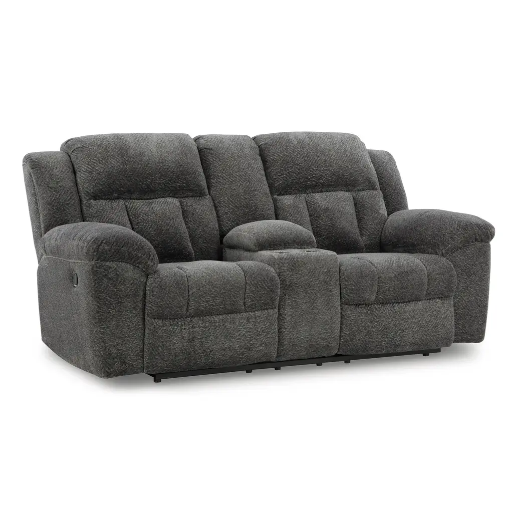 Relax with convenience in the Frohn Console Reclining Loveseat. Featuring dual reclining seats, a center storage console, and built-in cupholders, it’s perfect for movie nights. High-resiliency foam cushions and durable polyester fabric round out this inviting, low-maintenance piece.