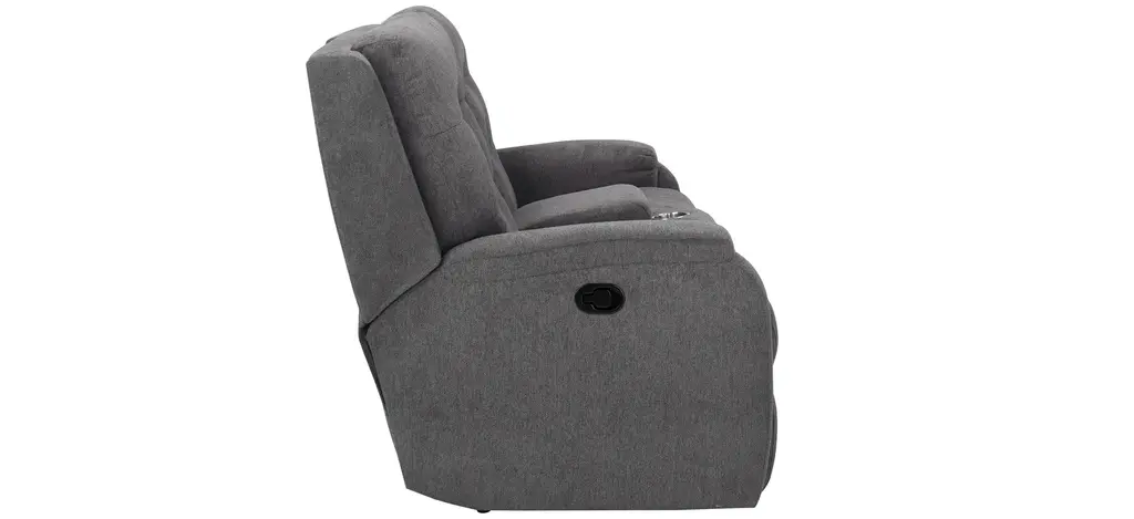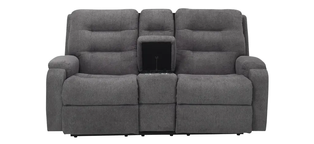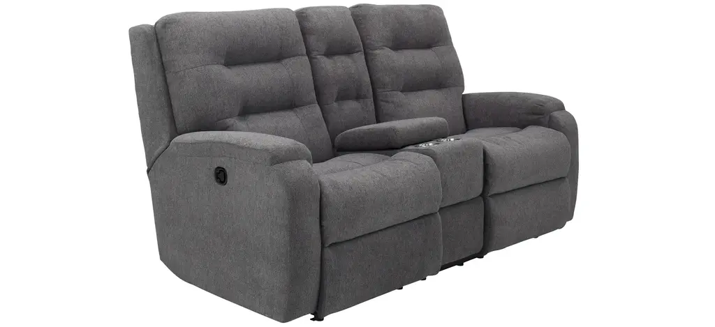 Whether you're napping or watching the big game, the Halenbeck Reclining Loveseat with Console keeps you comfy and puts items like remotes and beverages close at hand. The spacious center console includes storage for glasses, magazines and other personal items and features two cup holders. Designed to enhance your well-being, Halenbeck has pull-tufted, triple-divide back cushions for a distinctive look and comfortable feel. A contoured seat with chaise pad takes pressure off your legs as your sit, while our patented DualFlex Spring System provides firmness and flexibility. Rounded pad-over track arms cushion your forearms-something you'll really appreciate if you're spending hours gaming or streaming movies. Control the recline using an easy-access handle on either of the arms.